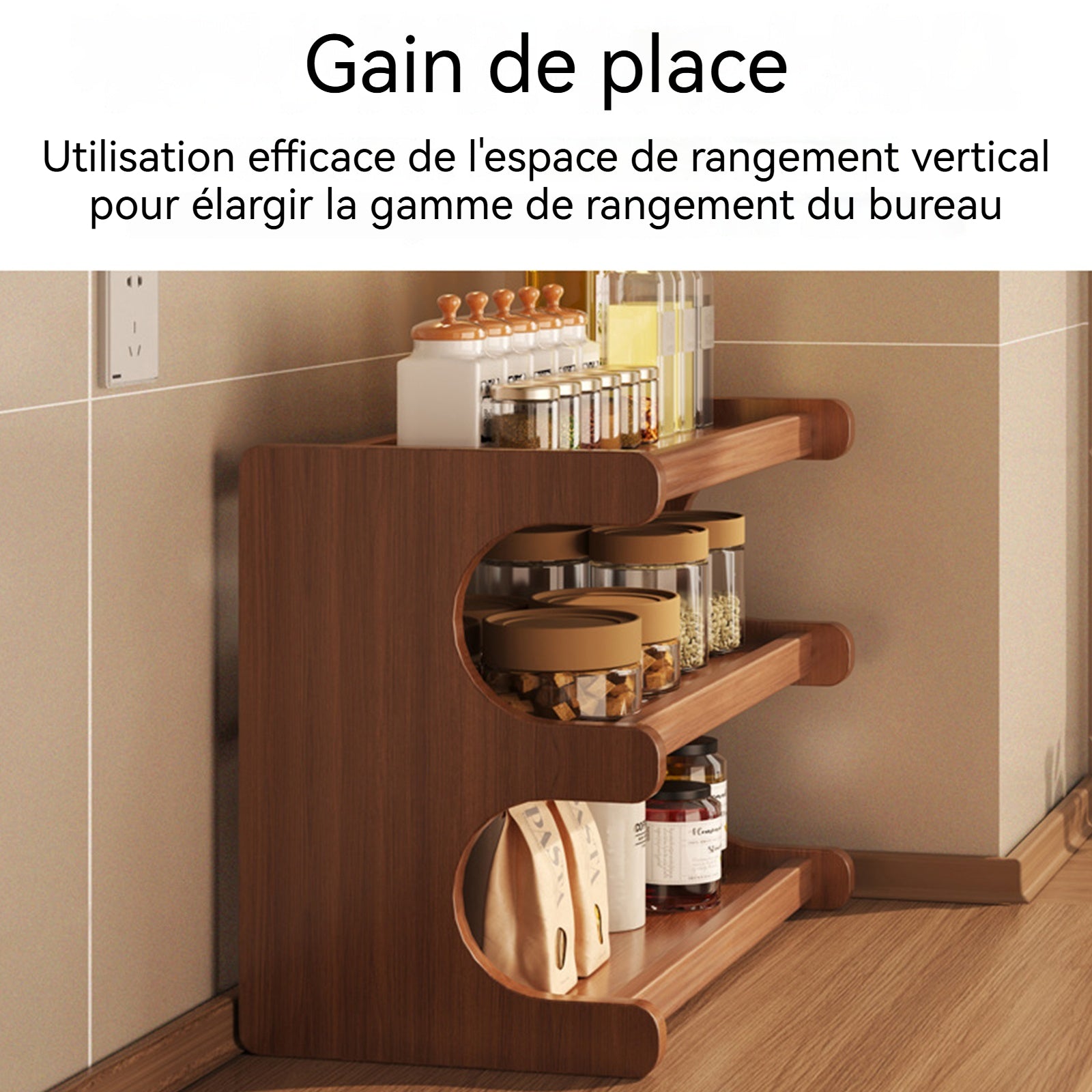 Étagère à épices 30x20x36cm Étagère de rangement multicouche multifonctionnelle en bois massif pour salon et chambre à coucher