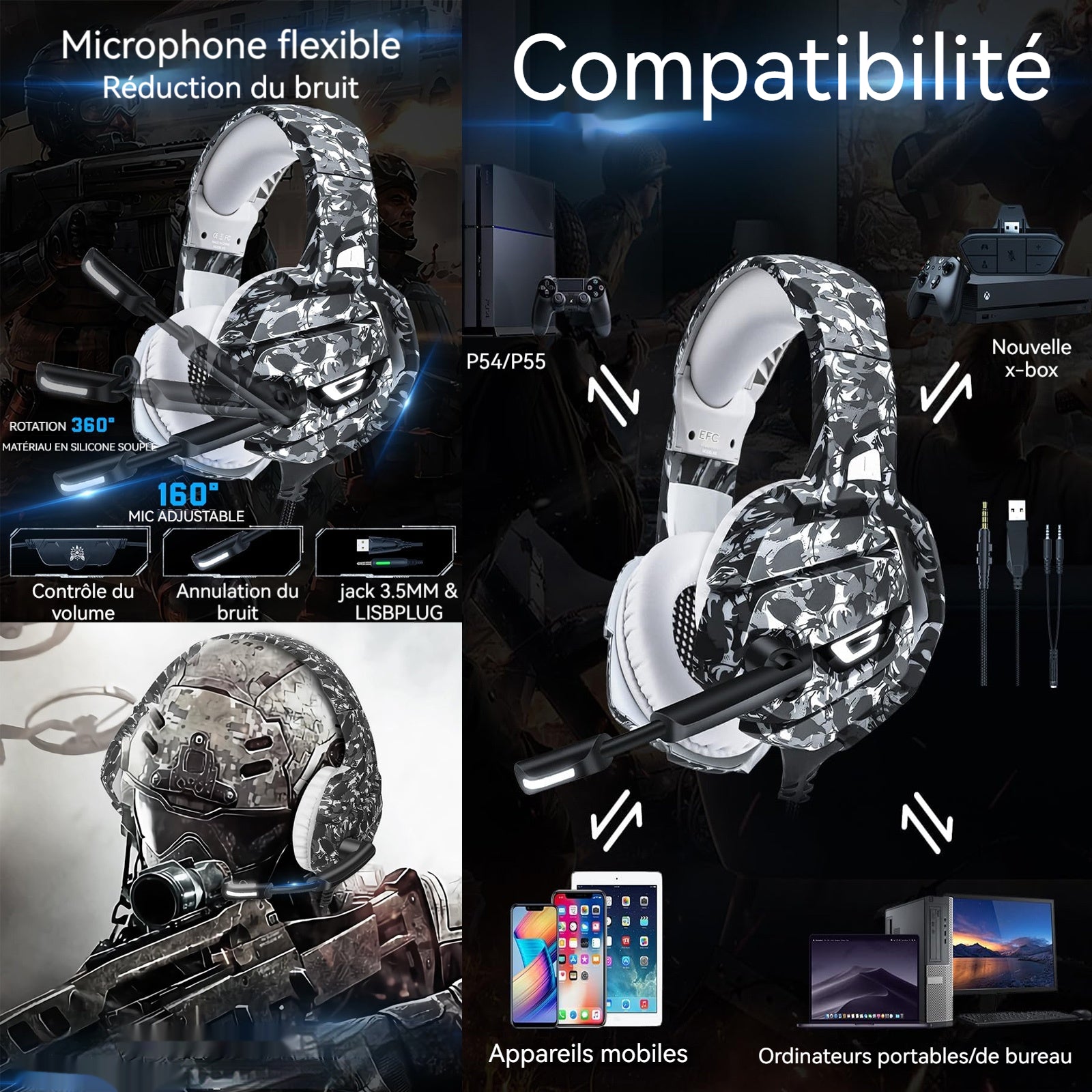 4. Apparence cool : ce casque de jeu avec microphone est équipé de lumières LED alimentées par USB, ce qui est très atmosphérique.