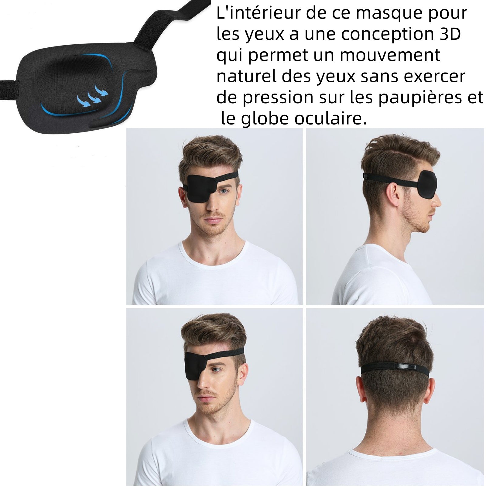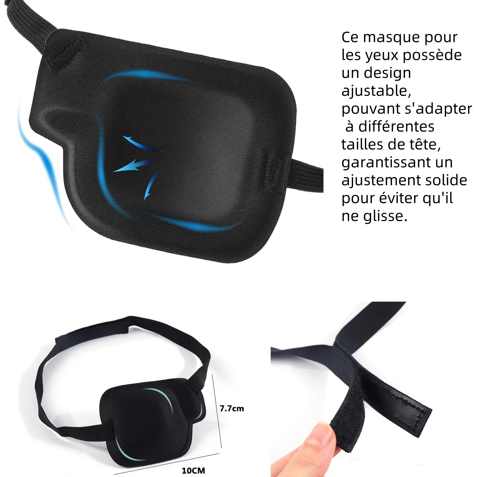 ache-œil unique noir pour l'œil droit réglable cache-yeux pour œil paresseux amblyopie masque pour les yeux cache-œil de pirate