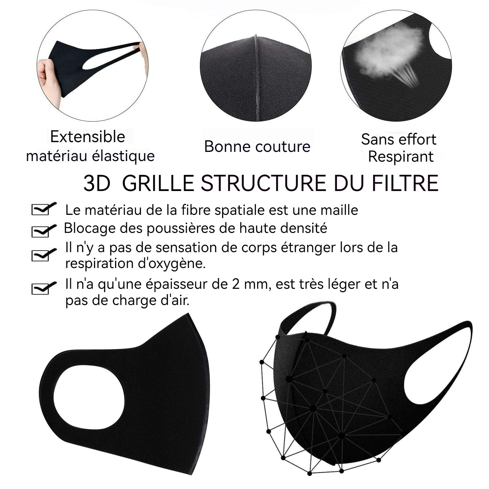 Masque facial 3D stéréoscopique 30x13cm Coton glacé Masque Decoratif Bibelot réutilisable Respirant Objet De Decoration lavable