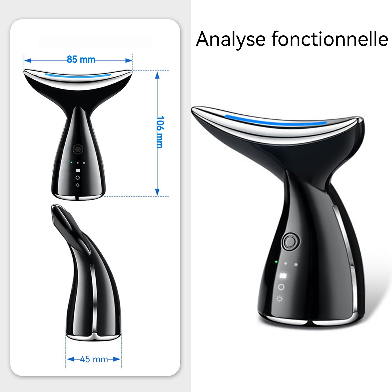 3. Polyvalent : cet instrument de beauté peut atténuer les rides du cou et éliminer les poches. Appliquer les produits de soins de la peau uniformément sur le cou, en fonction des besoins personnels pour choisir le bon mode d'équipement pour le massage, vous pouvez obtenir de meilleurs résultats.