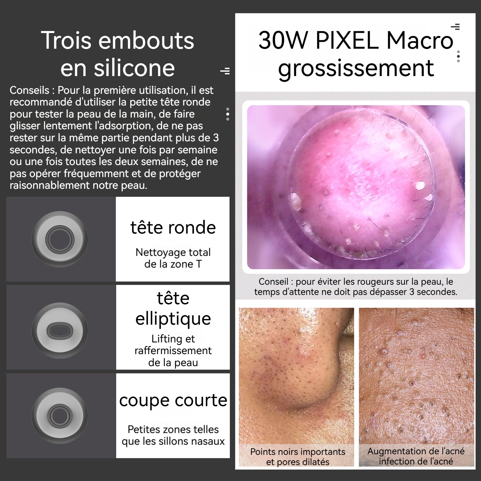 Aspirateur Point Noir 600mah électrique 30w pixels Ecran visuel LED Sélection de trois vitesses Aspirateur Point Noir électrique