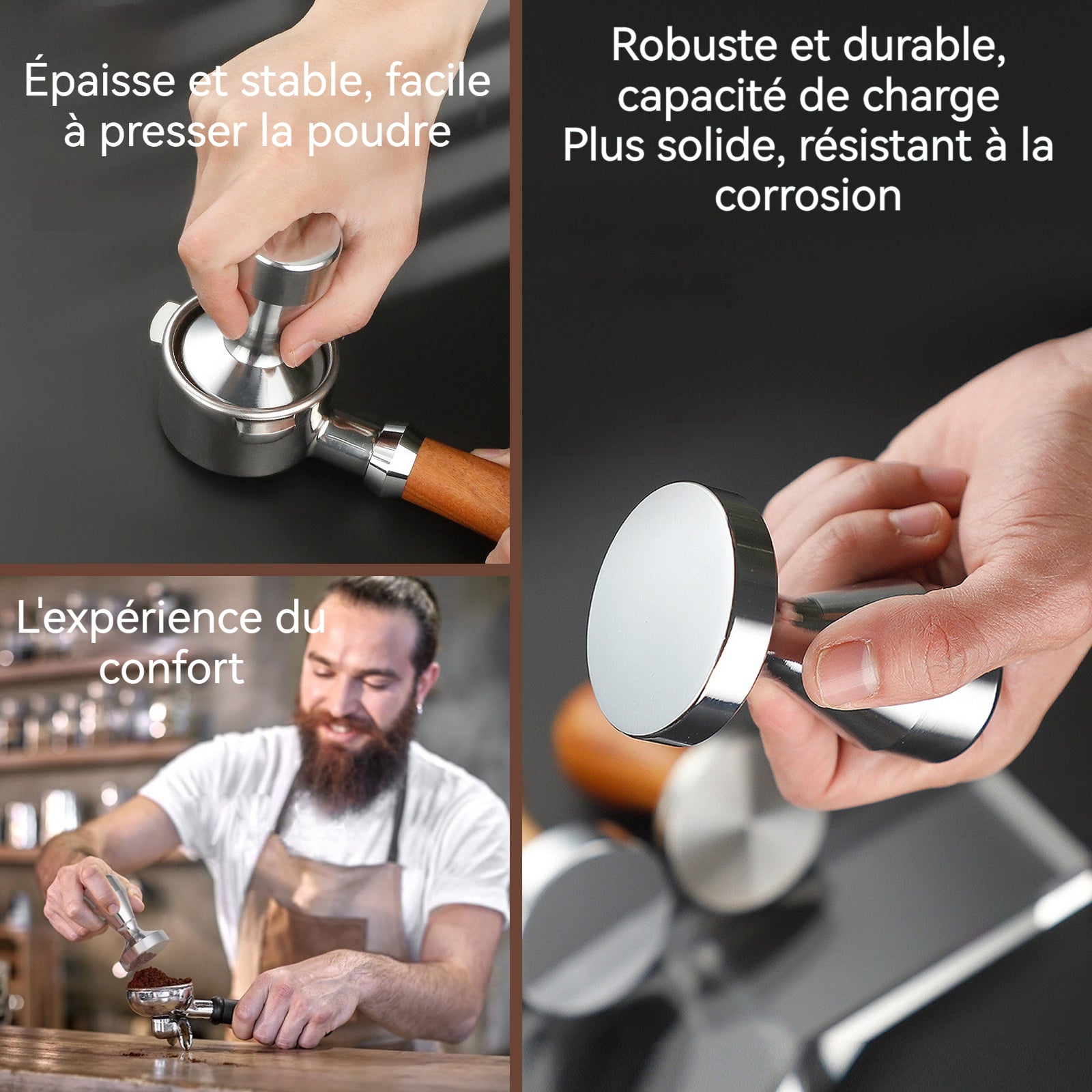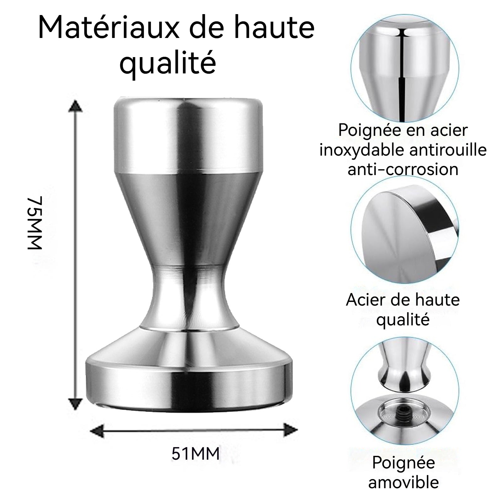 4. Efficacité professionnelle : Le presse-café en acier inoxydable a une spécification standard de 51 mm qui s'adapte à la plupart des machines à café, permettant une compression efficace et facilitant l'extraction d'un café au goût riche.