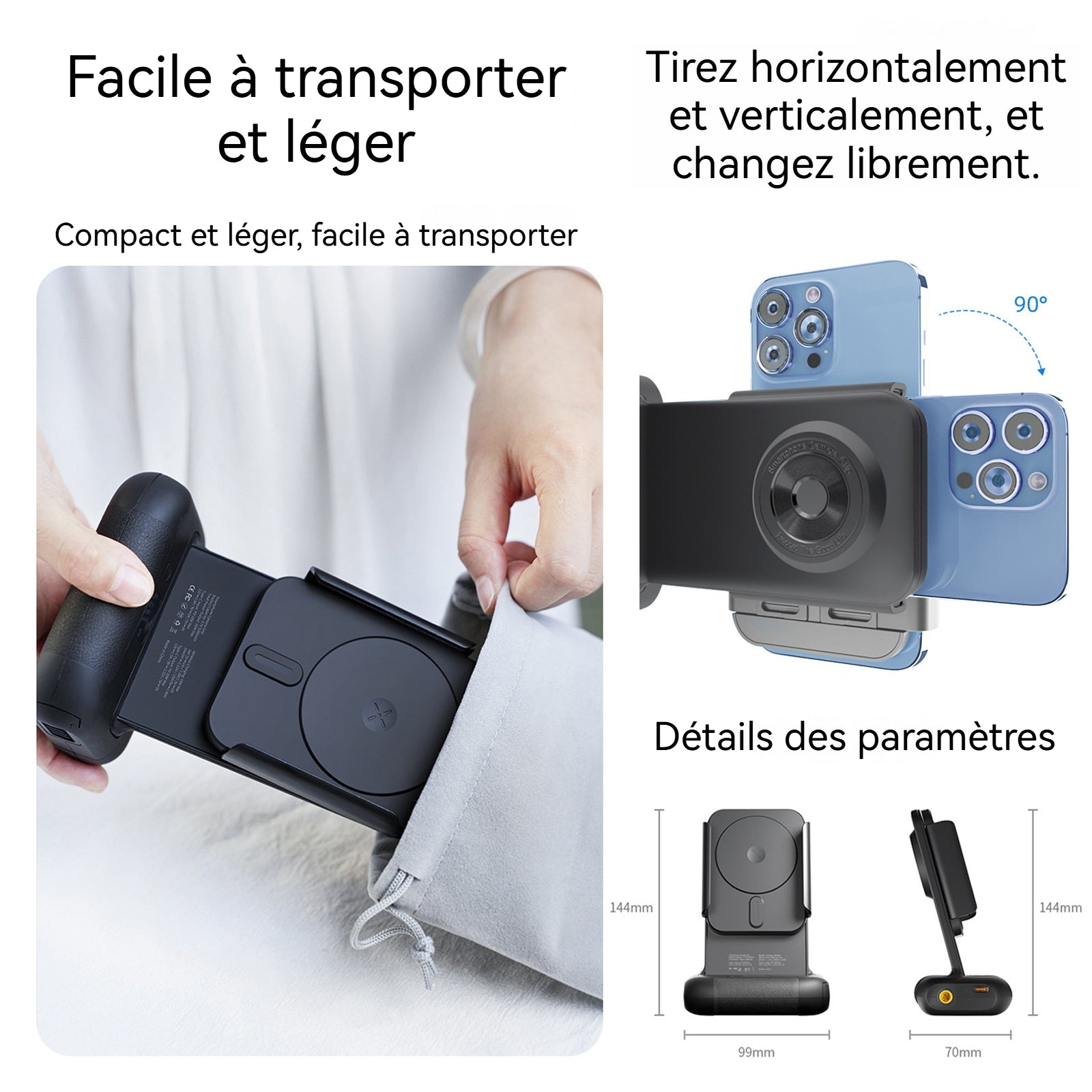 Adaptateur de trépied 14,4x9,9cm bluetooth magnétique adaptateur trépied smartphone stabilisateur de prise de vue télécommandé à 15m