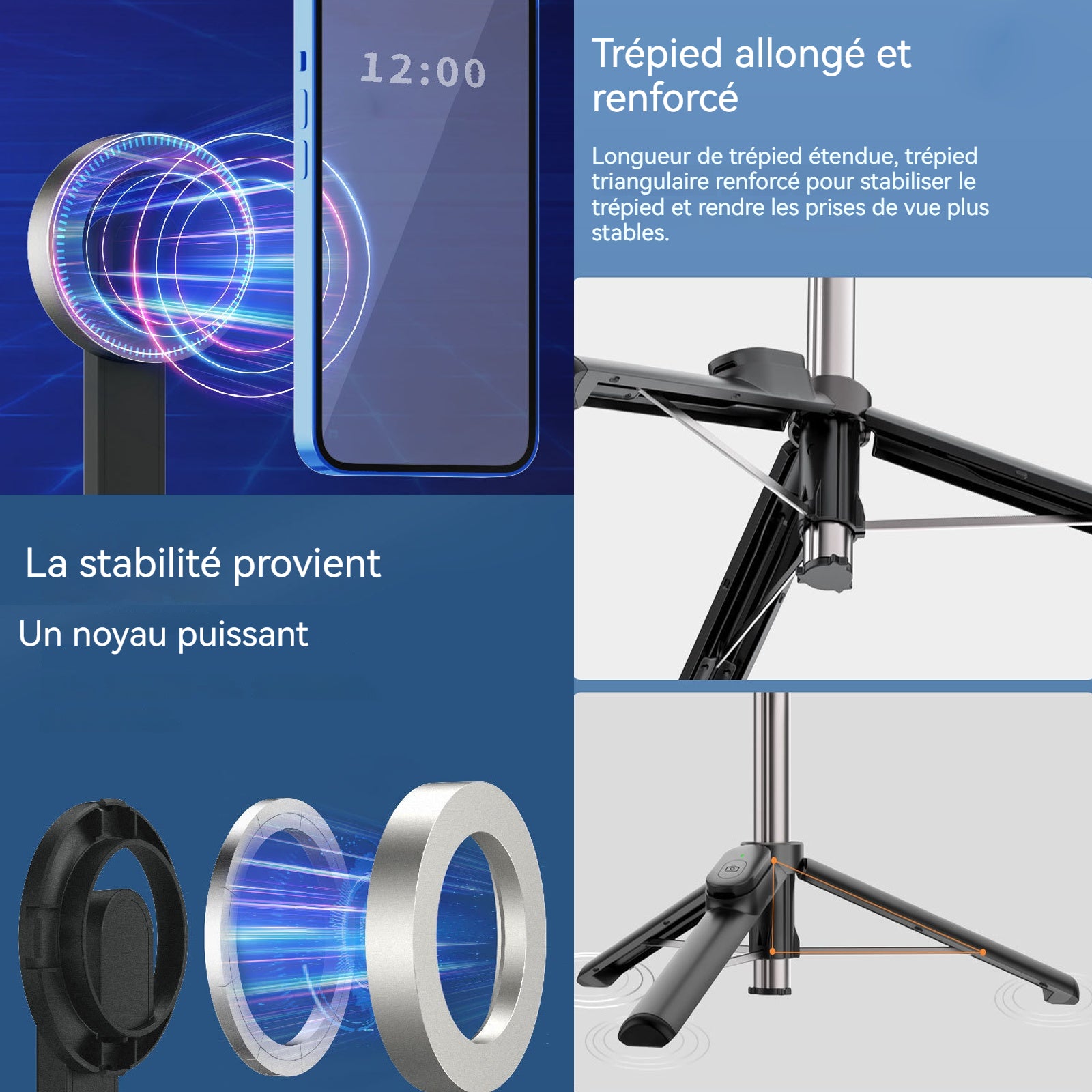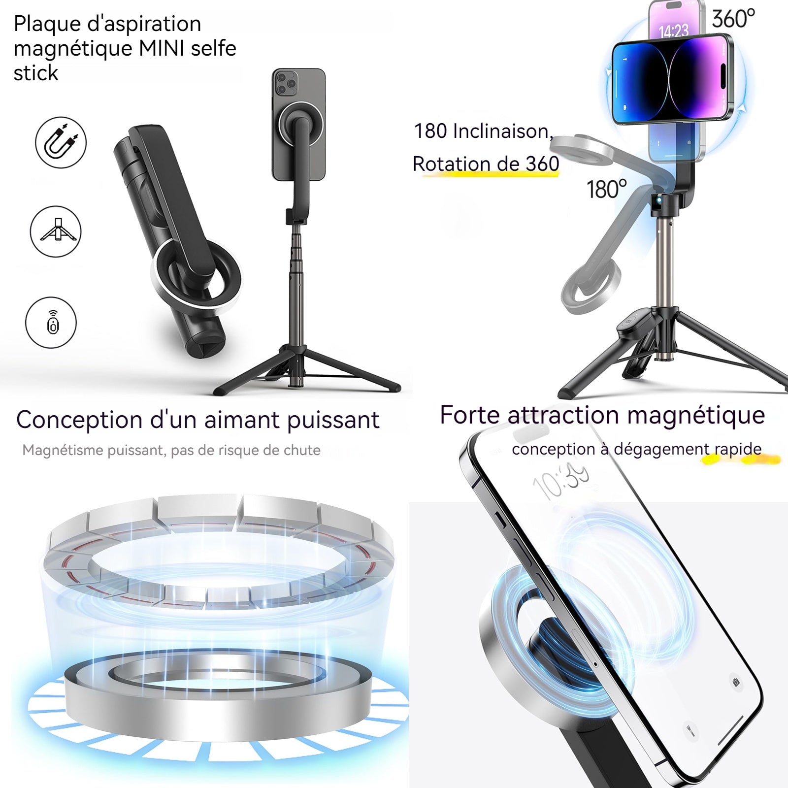 Nom : Perche à selfie avec attraction magnétique