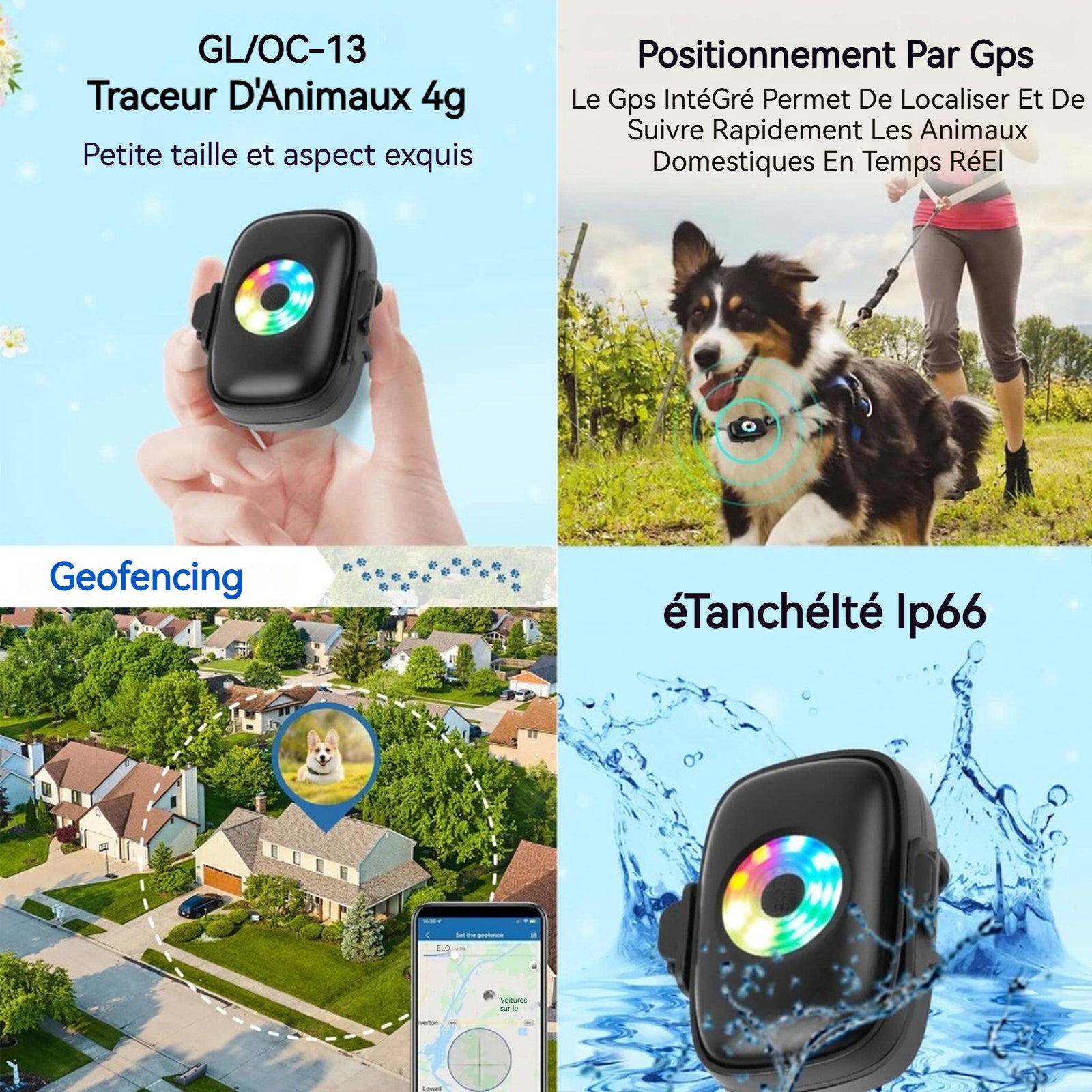 Collier gps 4G avec lumières LED colorées GPS BDS traqueur d'animaux traceur gps pour animaux localisateur pour chats et chiens