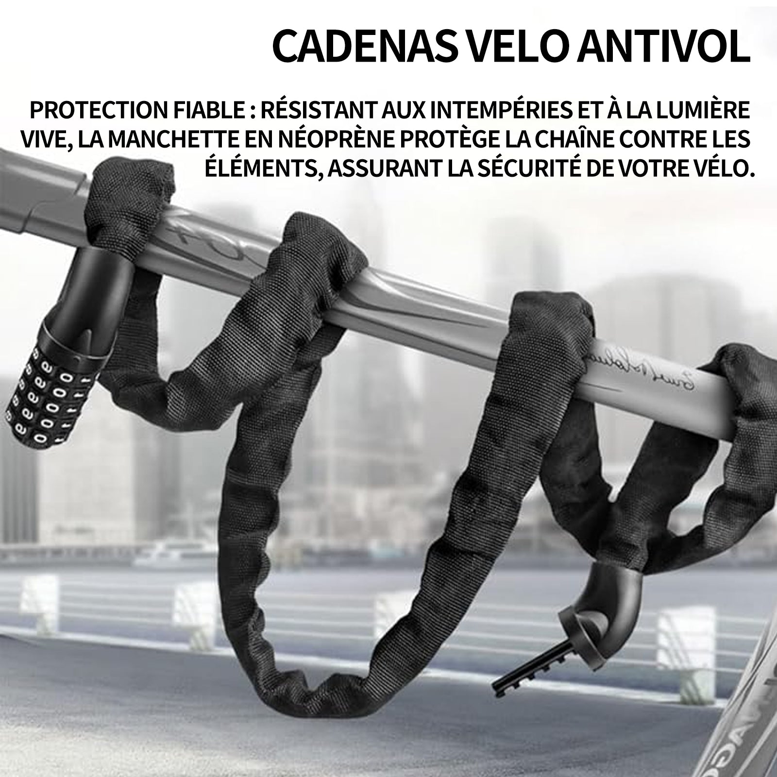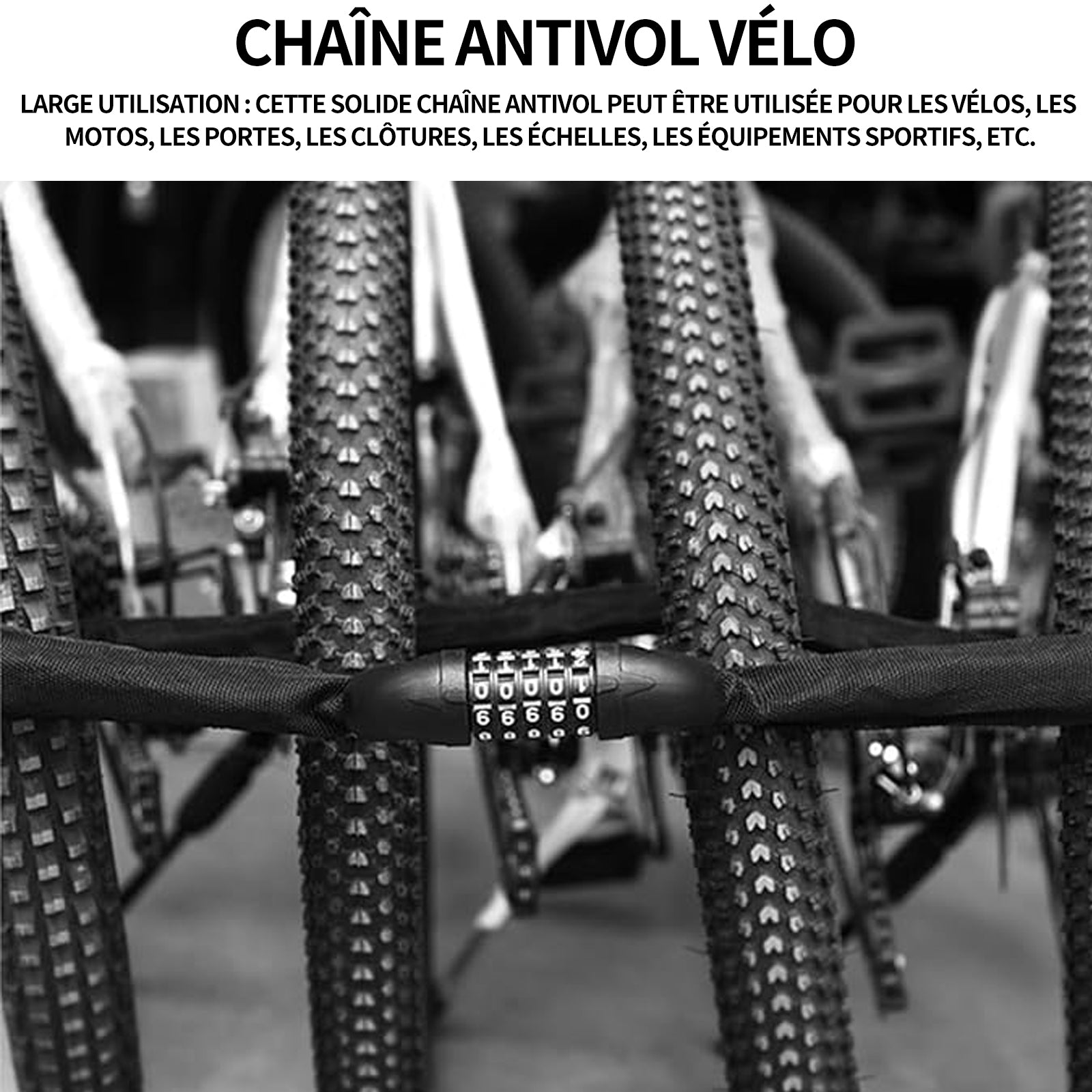 Antivol velo 110cm noir sécurité combinaison de chiffres cadenas pour vélo moto enfant adultes chaîne antivol vélo antivol de vélo