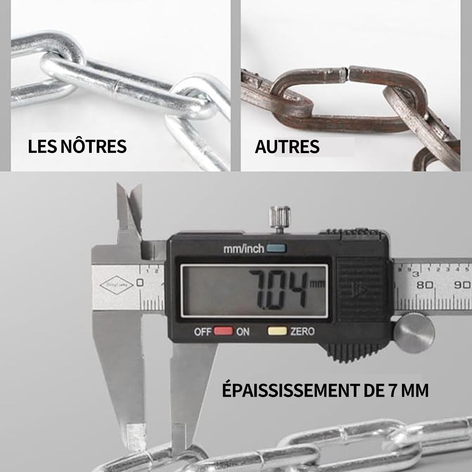 3. Large utilisation : Cette solide chaîne antivol peut être utilisée pour les vélos, les motos, les portes, les clôtures, les échelles, les équipements sportifs, etc.