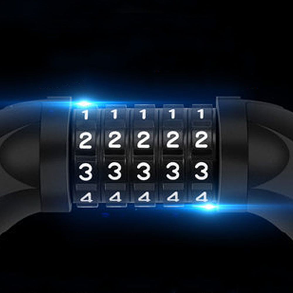 Cadenas de vélo 115CM Chaîne de verrouillage moto Cadenas de porte réinitialisable à 5 chiffres Cadenas de scooter noir
