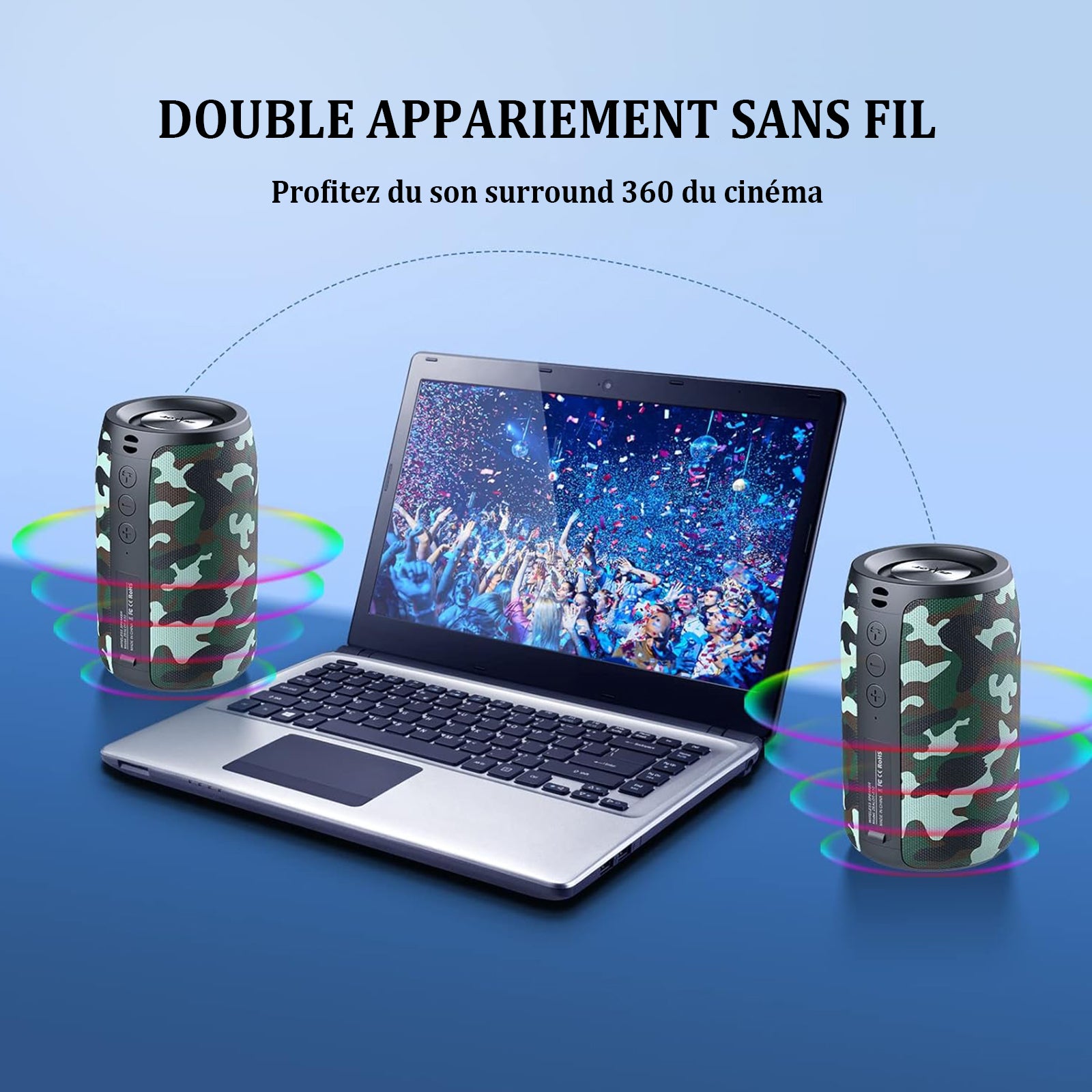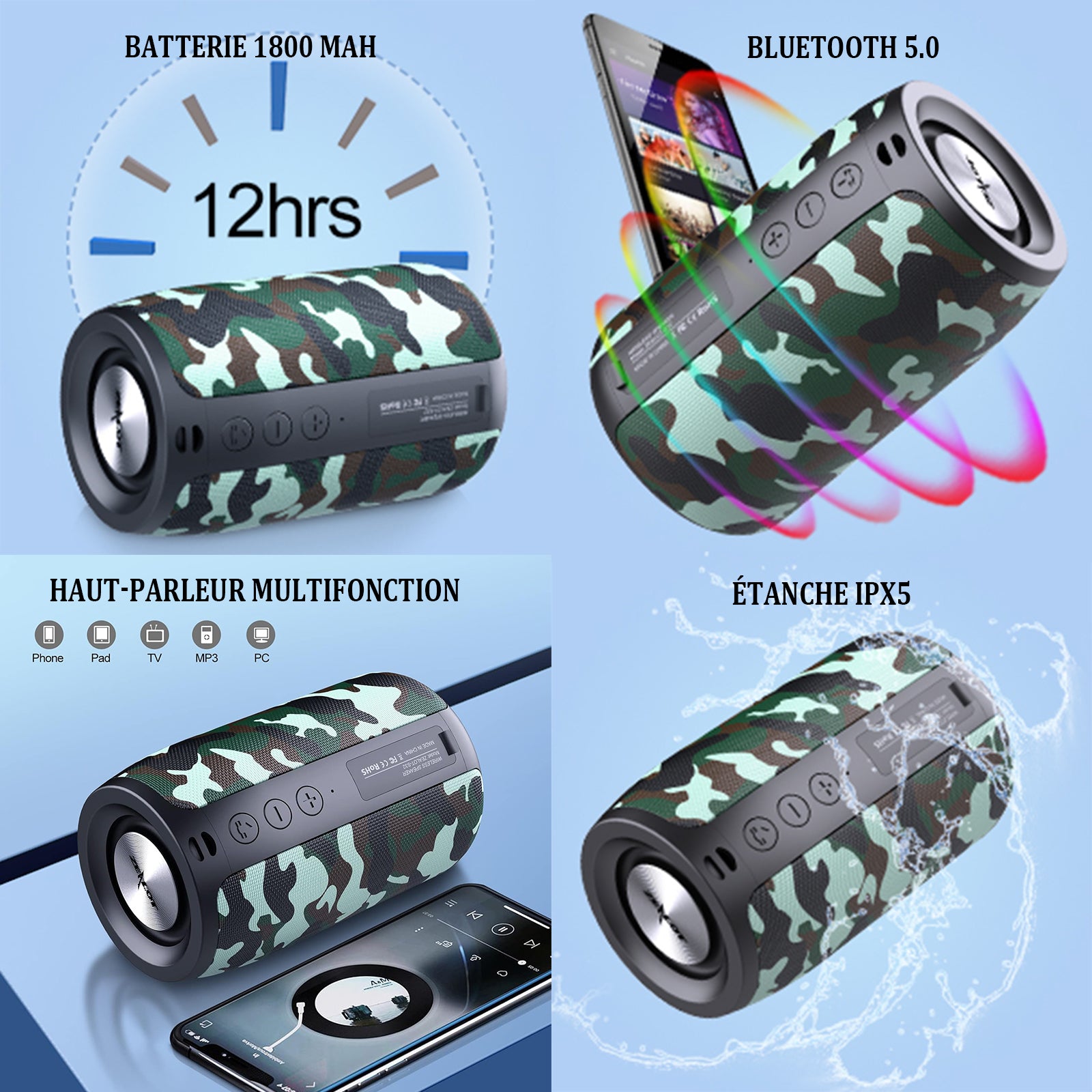 Enceinte bluetooth 1800 mAh BT 5.0 mini haut-parleur bluetooth enceinte sans fil IPX5 etanche haut-parleur bluetooth camouflage