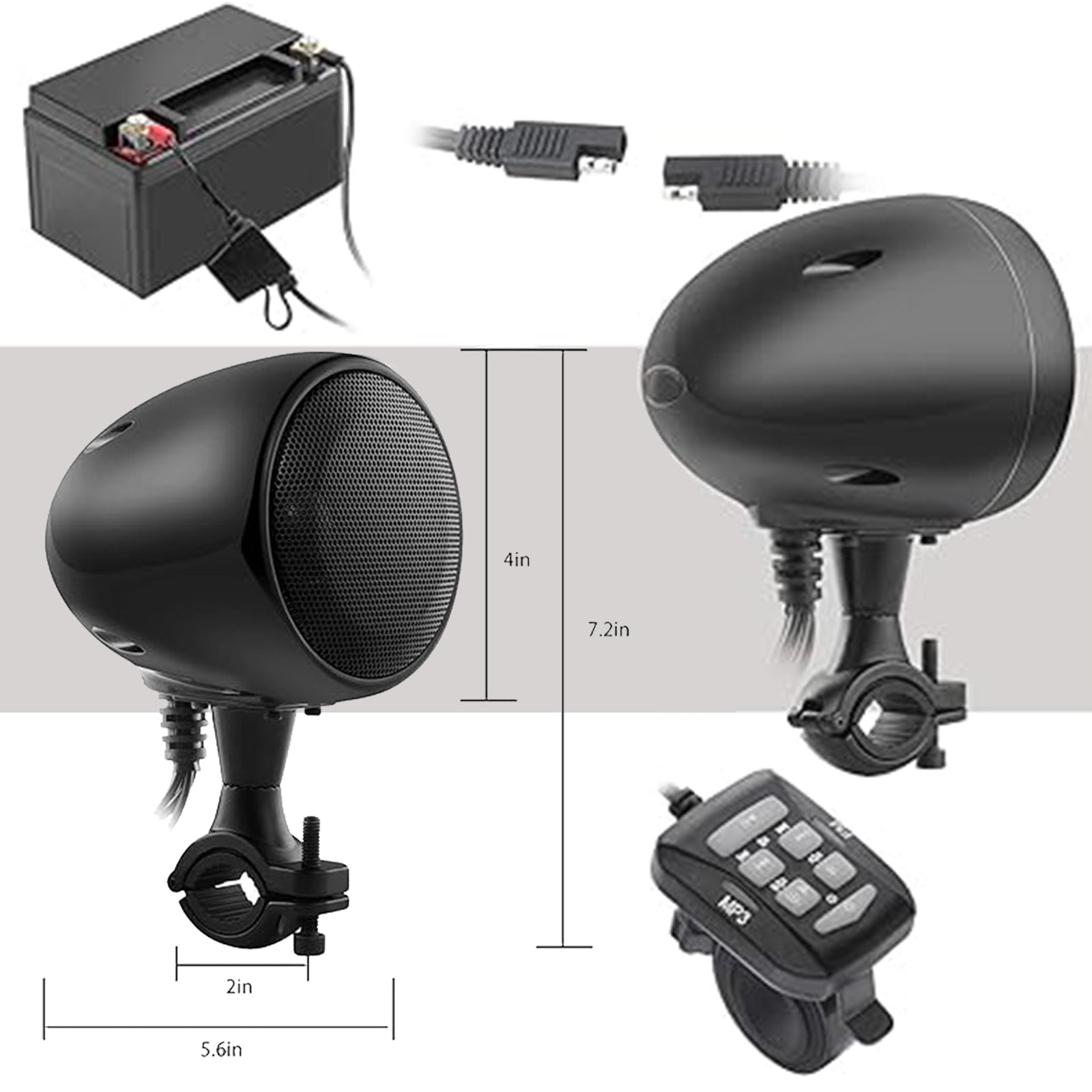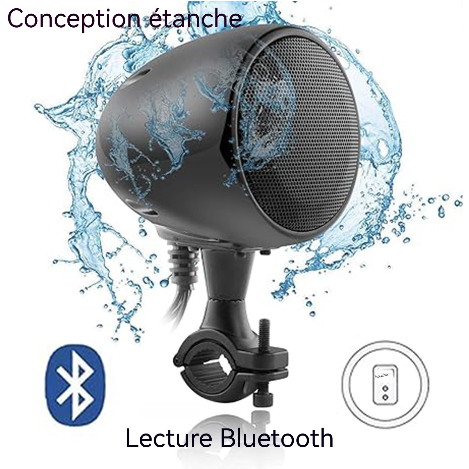 2. Stéréo : Ce haut-parleur de moto est équipé d'unités de haut-parleurs de haute qualité de 4 pouces avec un design stéréo à deux canaux, offrant un son clair et équilibré.