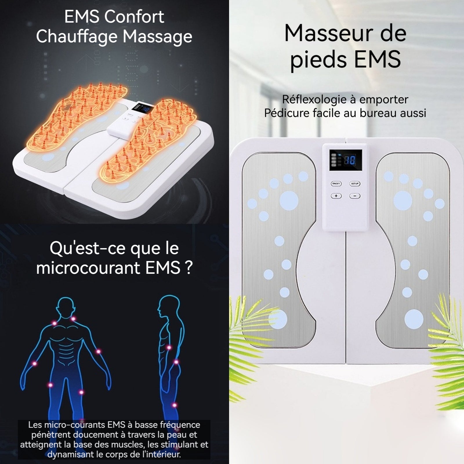 Masseur pieds 10 Modes Minuterie d'arrêt USB EMS Microcurrent Smart Touch Pliable Portable Ecran LCD 1.Appareil massage pied