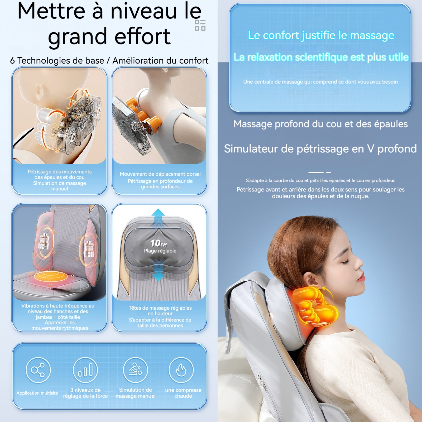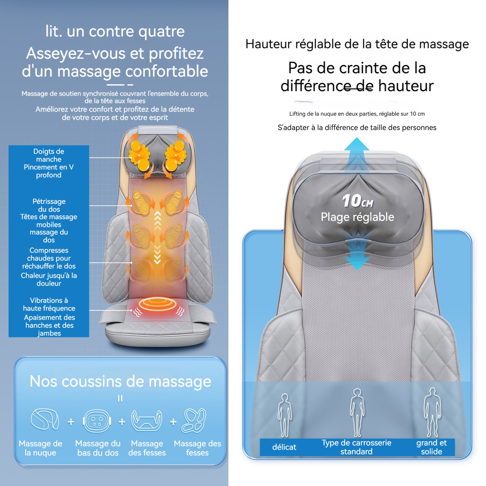 Matelas de massage 3 vitesses 4 modes Masseur cervical multifonctionnel coussin de massage de la taille chaise de massage électrique