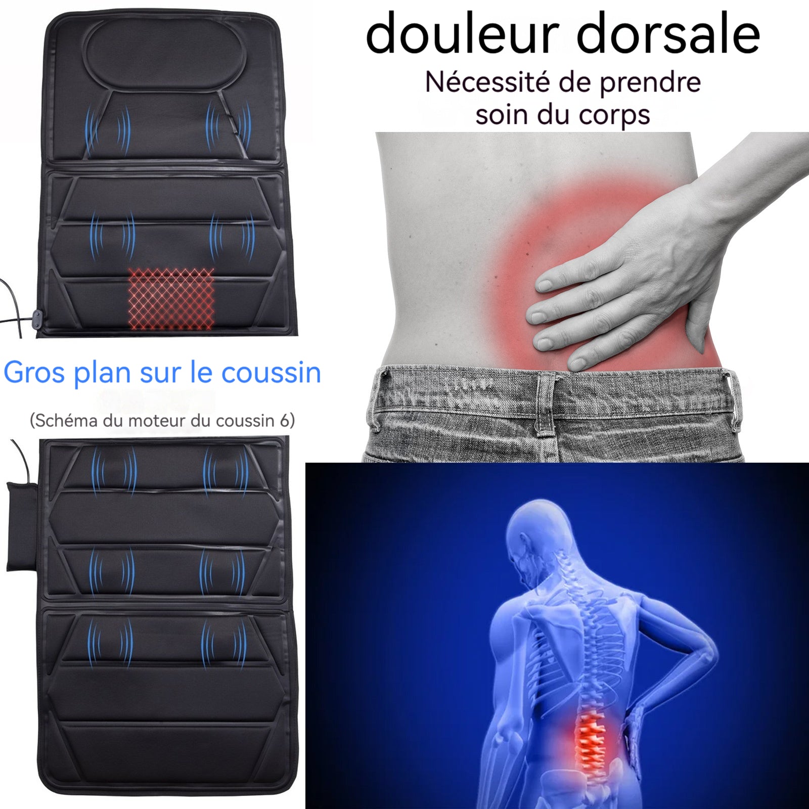 2. Chauffage : le coussin de massage a sa propre fonction de chauffage, qui peut garder le corps au chaud au maximum.