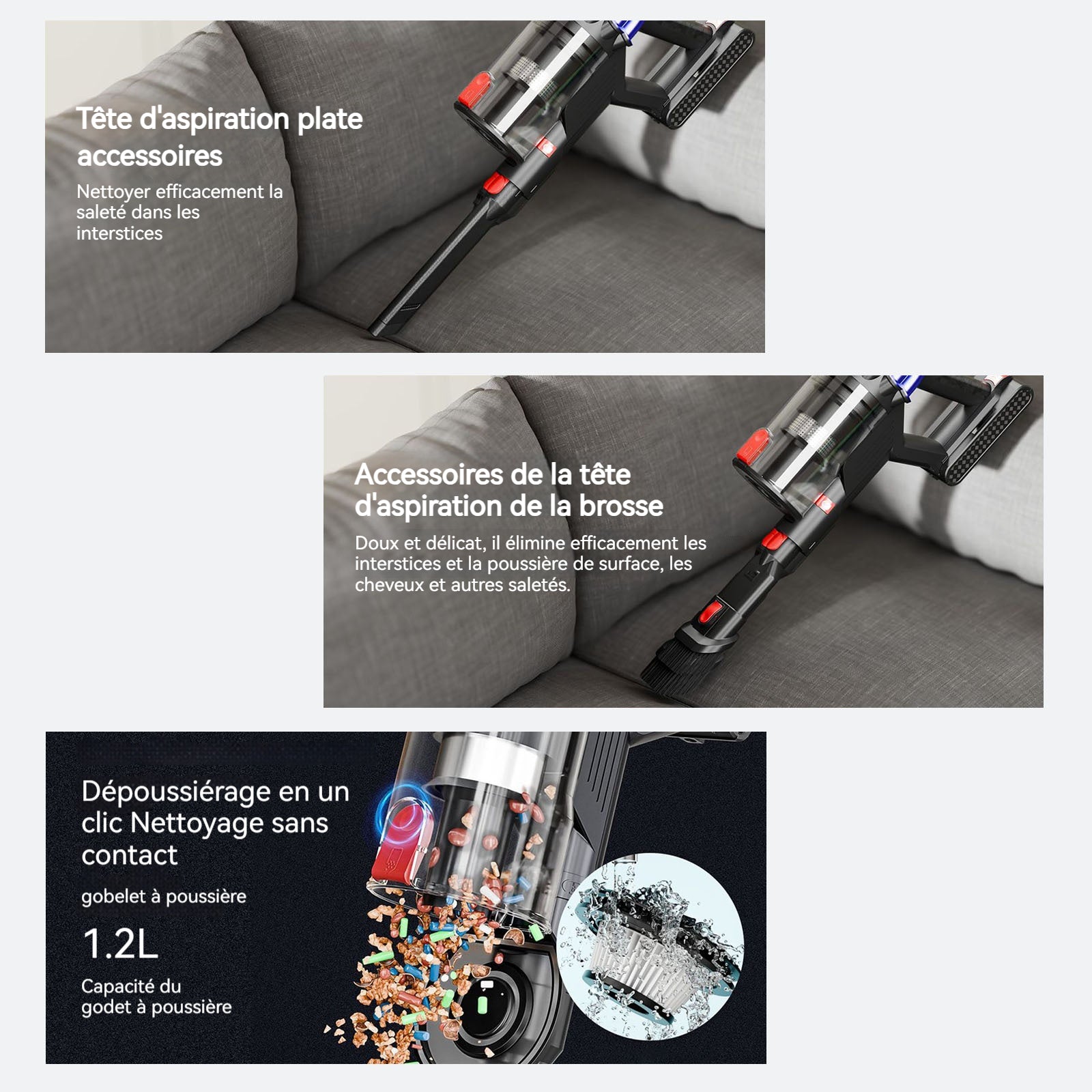 Aspirateur Balai sans Fil 550w 35kpa1.2L 3 vitesses Haute puissance Pour les sols durs et moquette Aspirateur à main pour maison