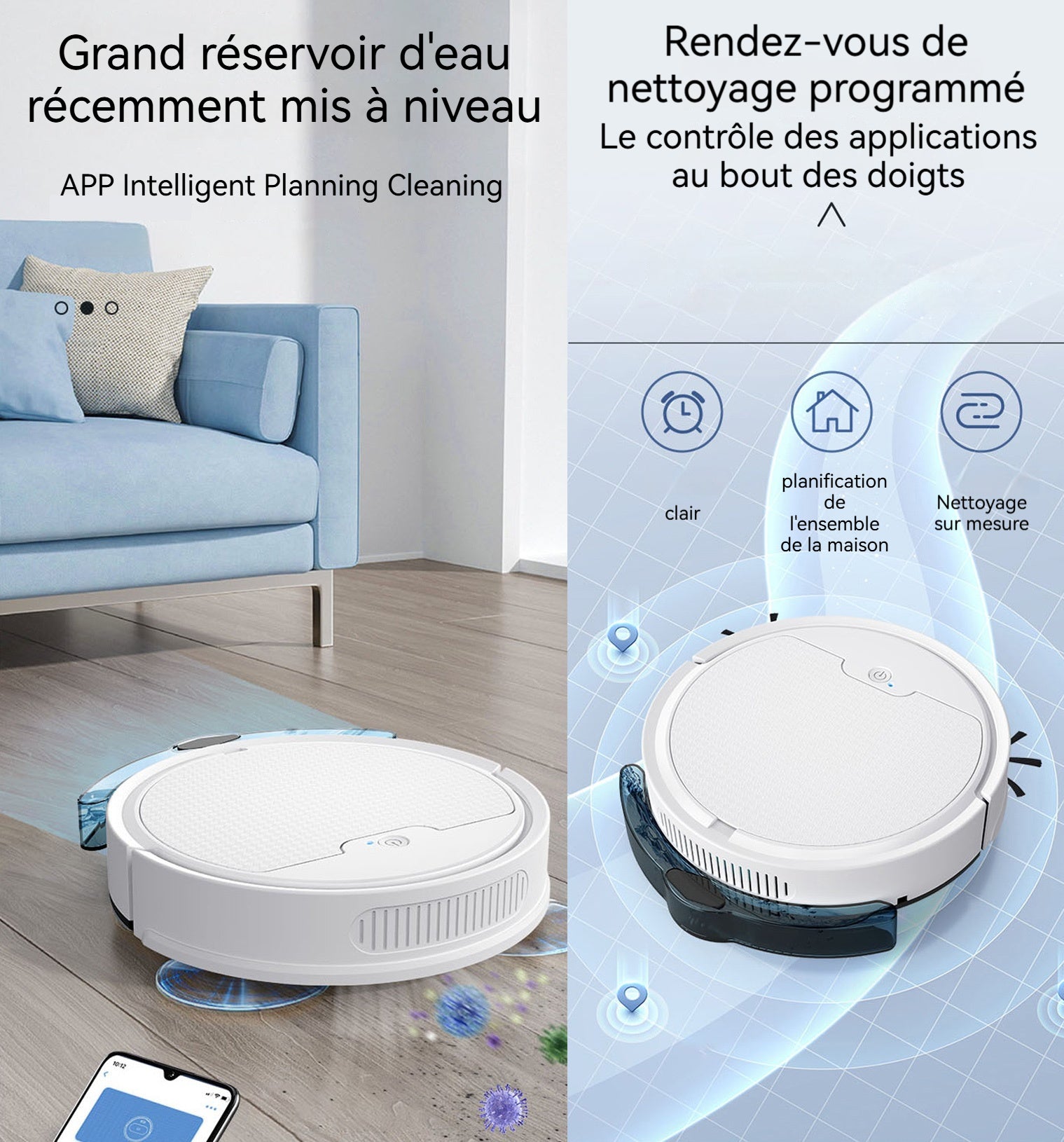 Robot aspirateur 3 en 1 2000 Pa Forte Aspiration charge USB poils d'animaux détection obstacles intelligent chargeur domestique
