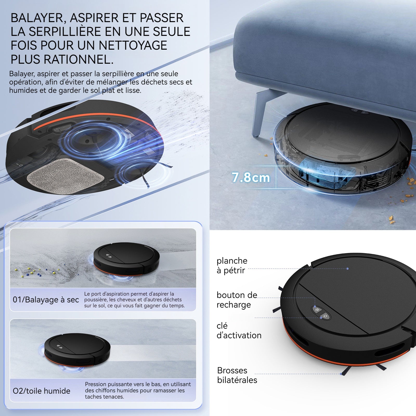 Robot aspirateur 4000pa 6000mah 4 niveaux de réglage Wi-Fi aspirateur robot avec 335ml boîte à poussière et 100ml réservoir d'eau