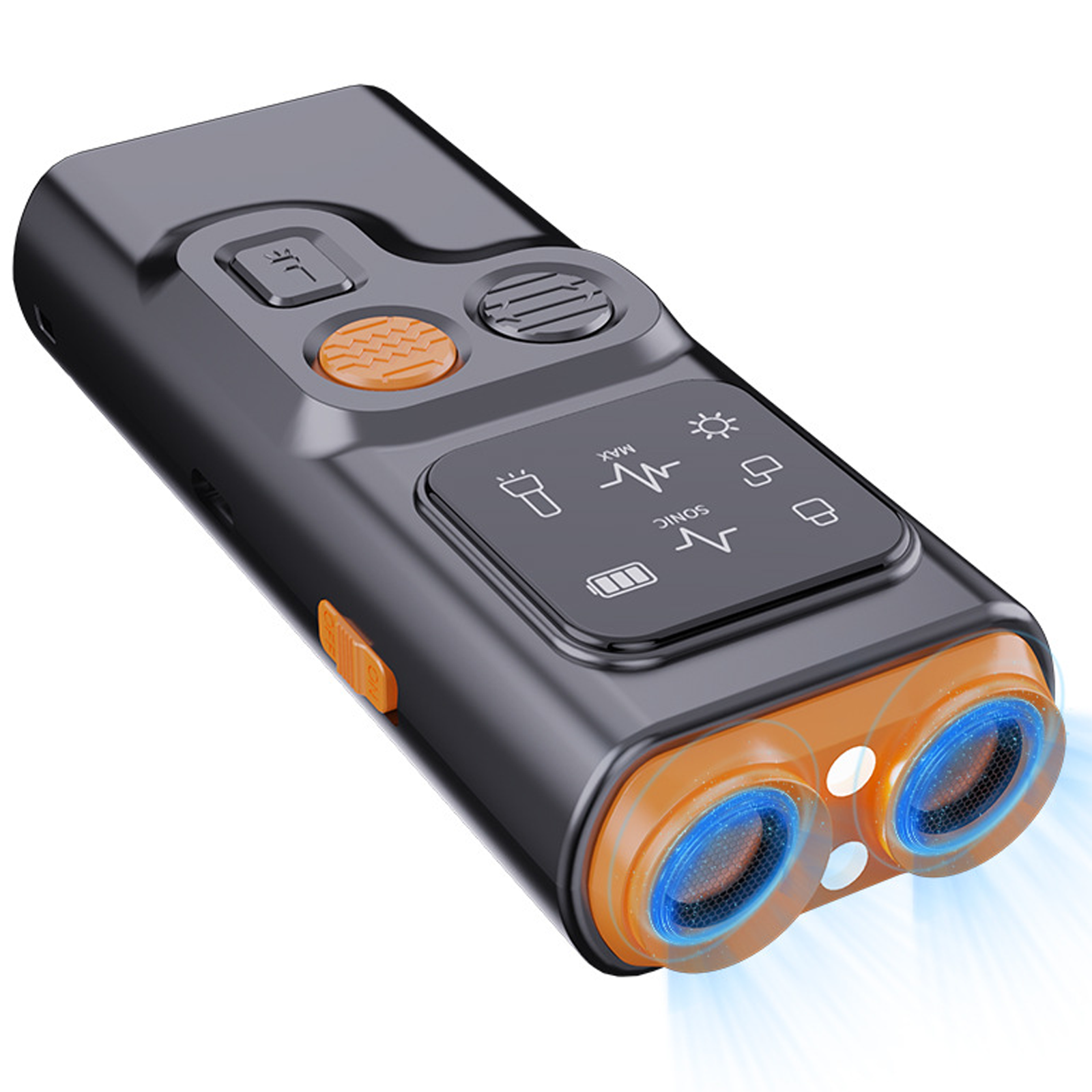 2. Flash lumineux à haute fréquence : Le répulsif pour chiens est spécialement conçu avec des lumières clignotantes à haute fréquence pour intimider les chiens agressifs, combiné avec des ultrasons, offrant une double menace qui maximise l'efficacité du repousseur.