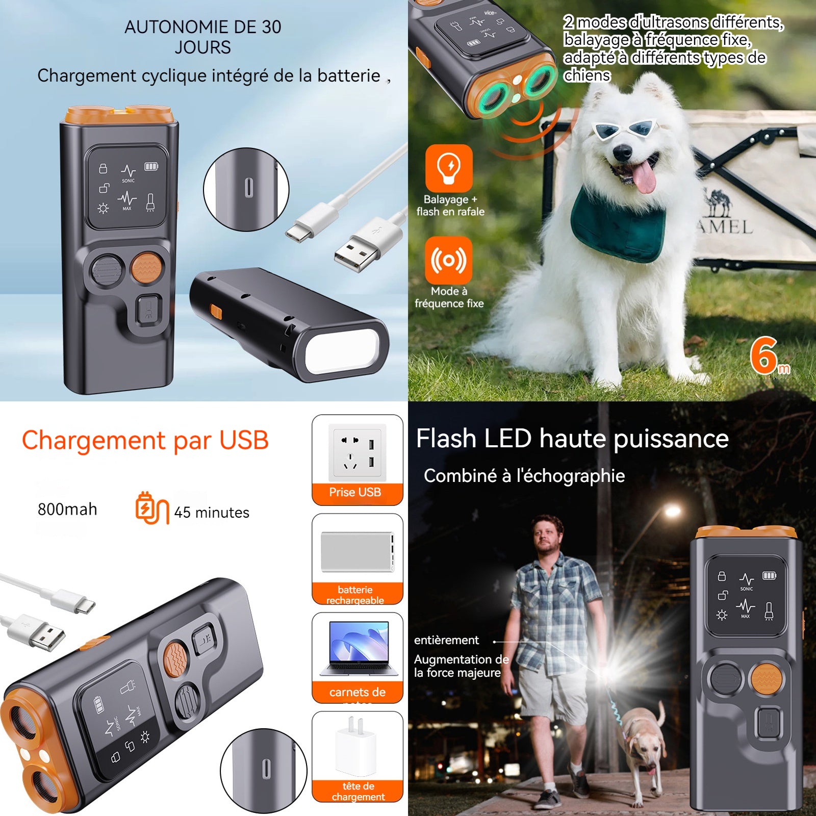 Anti aboiement chien 30khz répulsif à ultrasons pour chiens avec lumière stroboscopique haute fréquence et 2 modes ultrasoniques