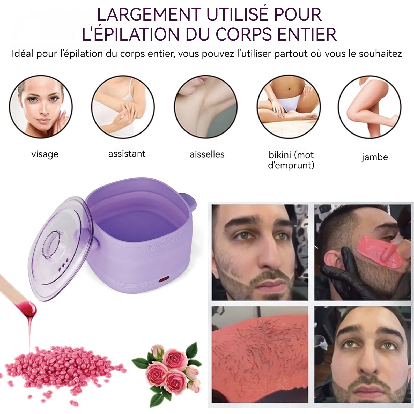 Chauffe cire epilation electrique professionnelle 400ml pliable silicone facile nettoyer chauffe-cire electrique portable compact