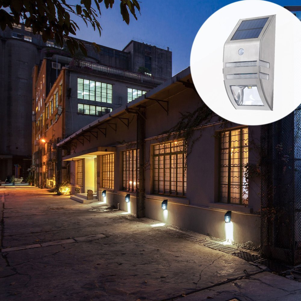 INN® Applique solaire murale détecteur de mouvement acier inoxydable capteur corps Lumière de couloir LED solaire jardin haute lumin