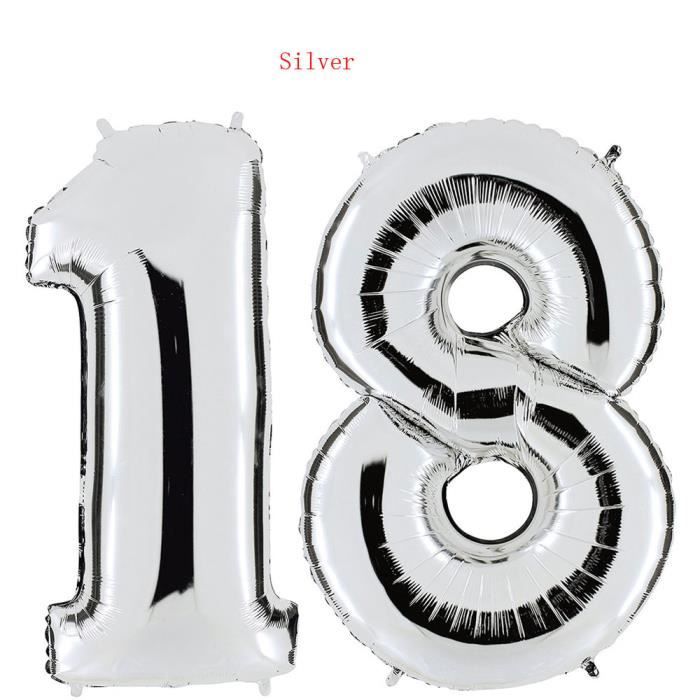 TD® Ballon Décoratif d'hélium 40 pouces numéro 18 pour Anniversaire/ Ballons pour anniversaire de mariage décoration (argent)