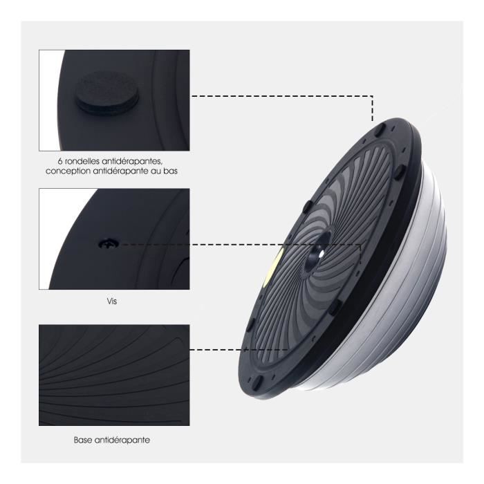 dôme. Moins celui-ci est gonflé, plus l'activité avec la planche d'équilibre sera difficile.