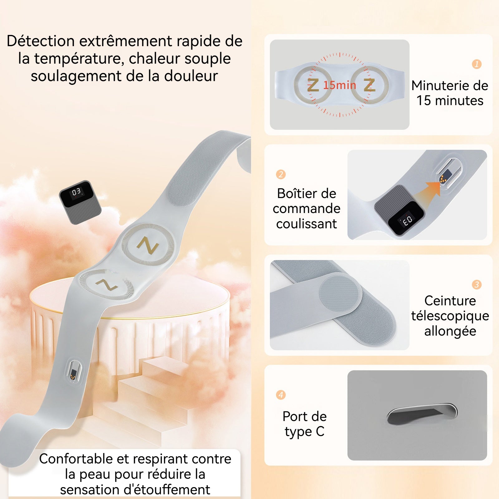 3. Commande pratique : La ceinture chauffante est dotée d'un boîtier de contrôle à boucle coulissante, intégrant la batterie à la plaque, ce qui la rend difficile à détacher ; la boucle mère-fille allongée facilite le réglage. La batterie lithium de grande capacité équipée d'un chargement Type-C offre une autonomie prolongée, sans souci lors des déplacements.
