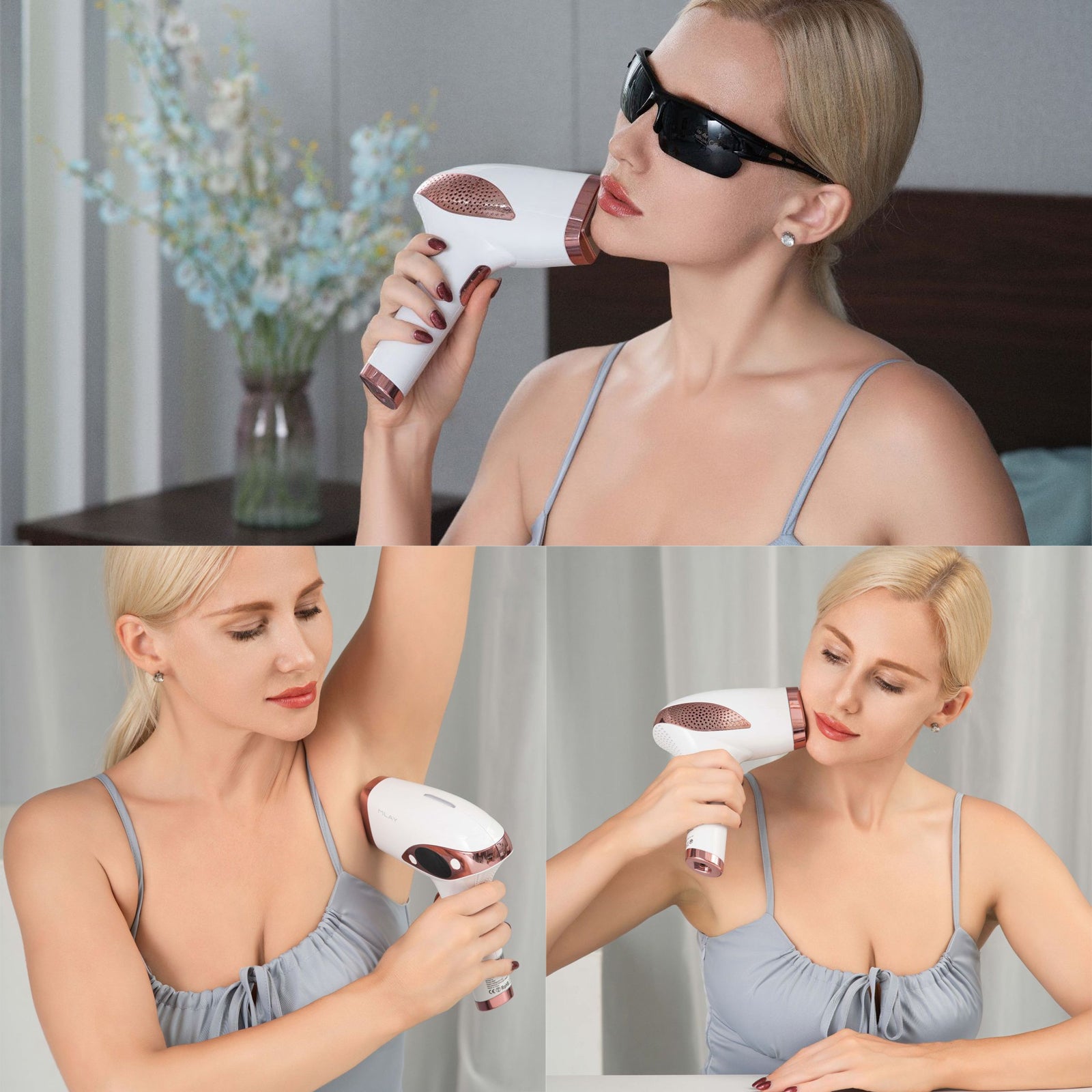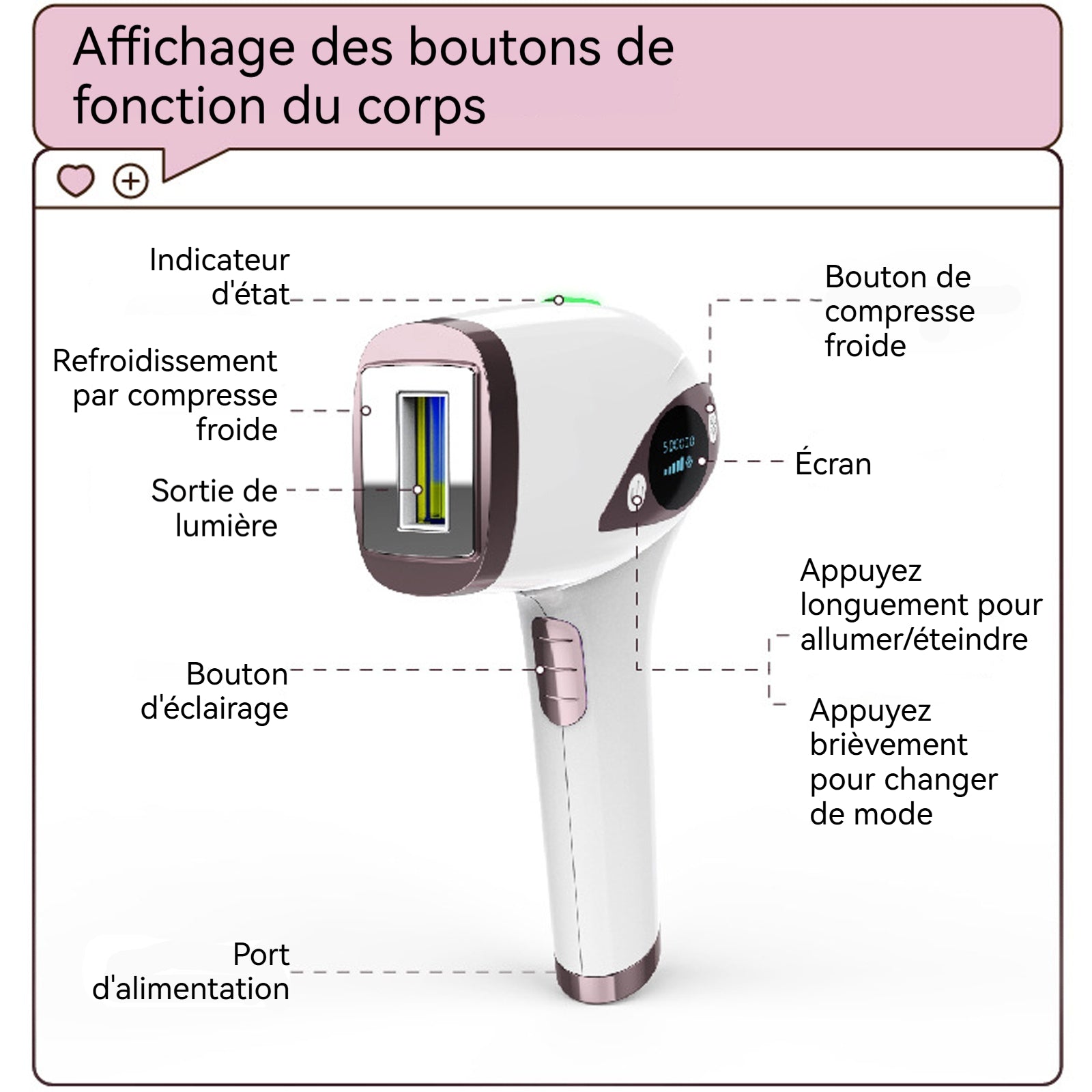 2. Sûr et efficace : Cet épilateur électrique utilise la technologie IPL avancée pour pénétrer directement les follicules pileux et inhiber la repousse des poils. 500 000 flashs suffisent pour une épilation complète du corps.