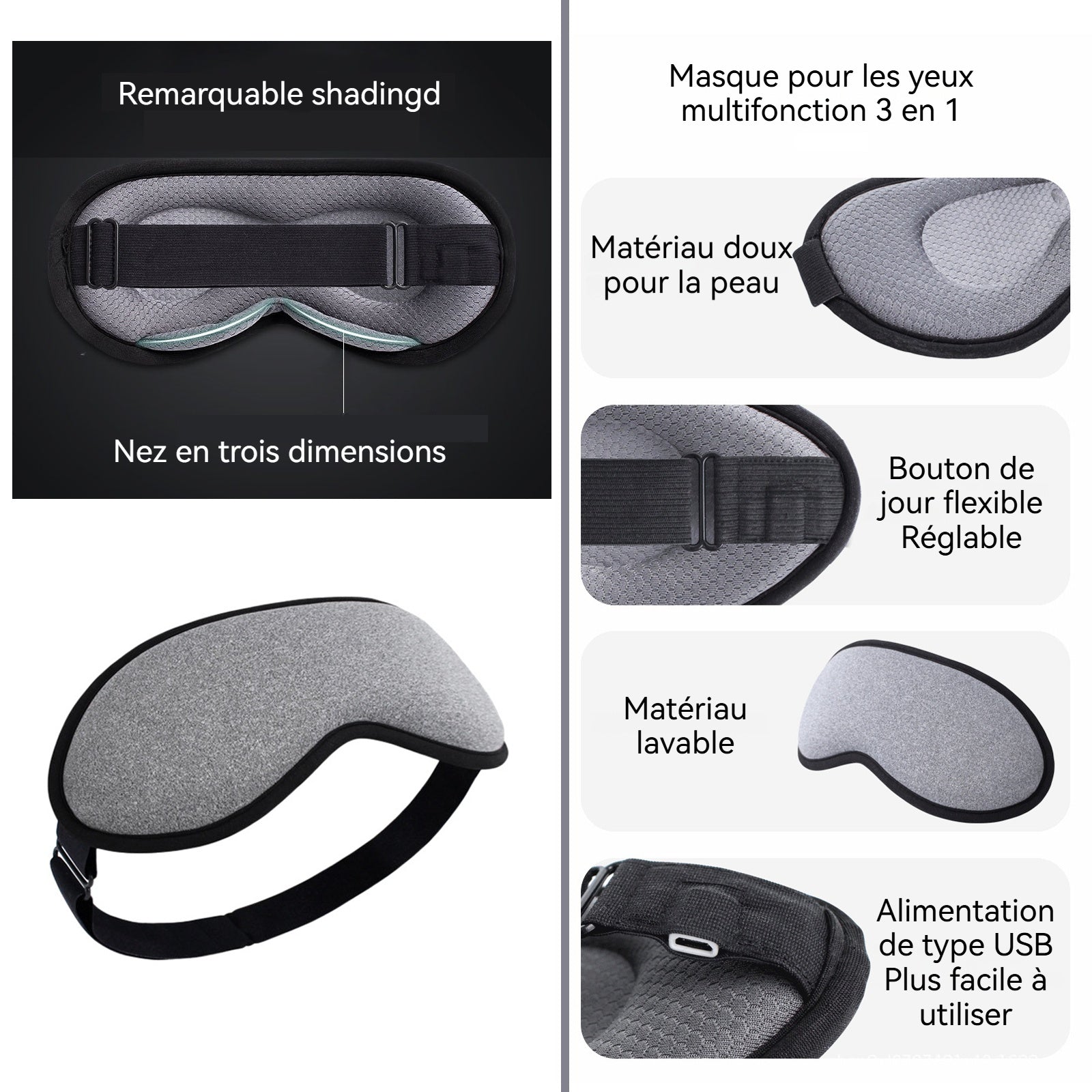 2. 3 réglages de température et de minuterie : Ce masque de massage chauffant pour les yeux dispose de 3 réglages de température, vous permettant de personnaliser votre propre spa oculaire pour répondre à vos besoins de sommeil.
