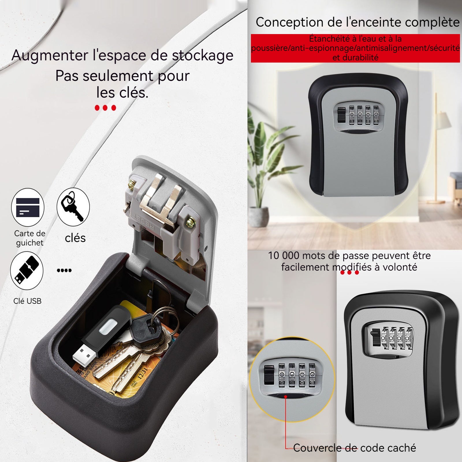 Boite à clé 11x9x4cm code à avec 4 chiffres sécurisée etanche boite à clef boite a clefs murale résistant aux intempéries alliage