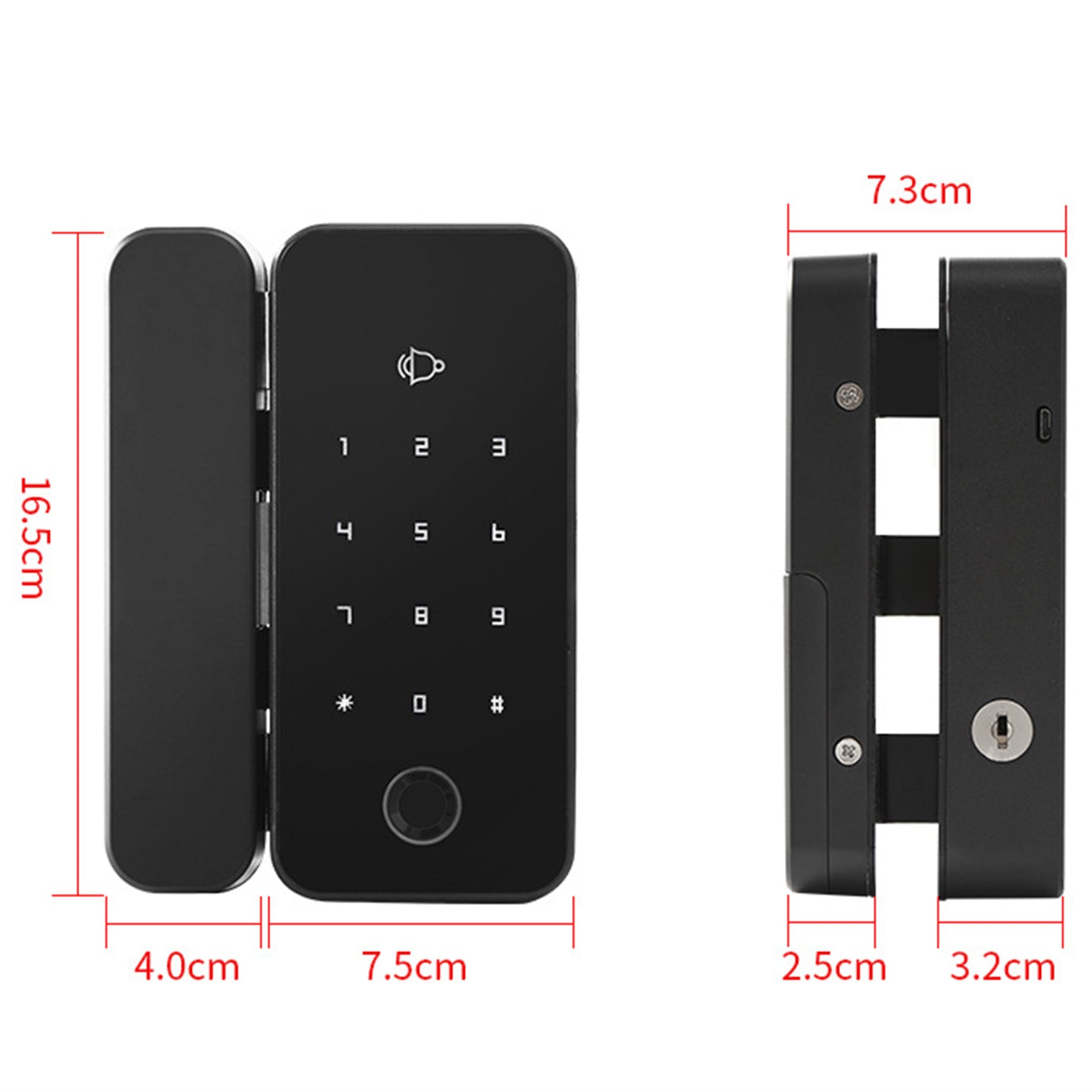 TD® Serrure d'empreinte digitale de porte en verre de bureau à trou ouvert présence unique serrure de mot de passe sans cadre ouvert