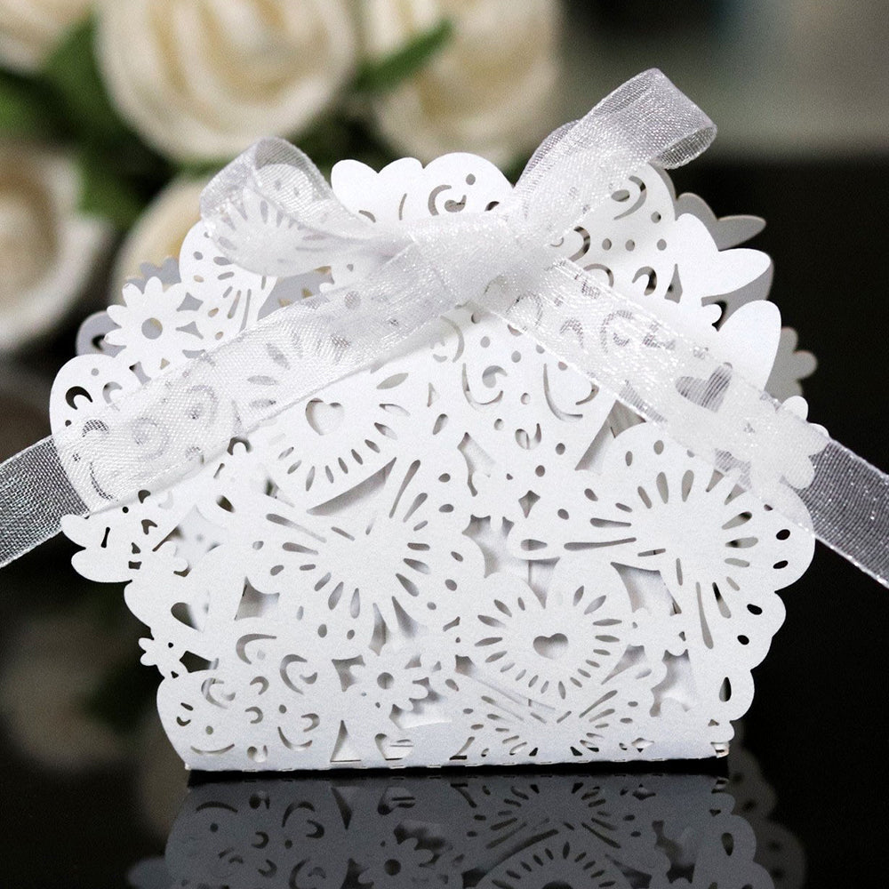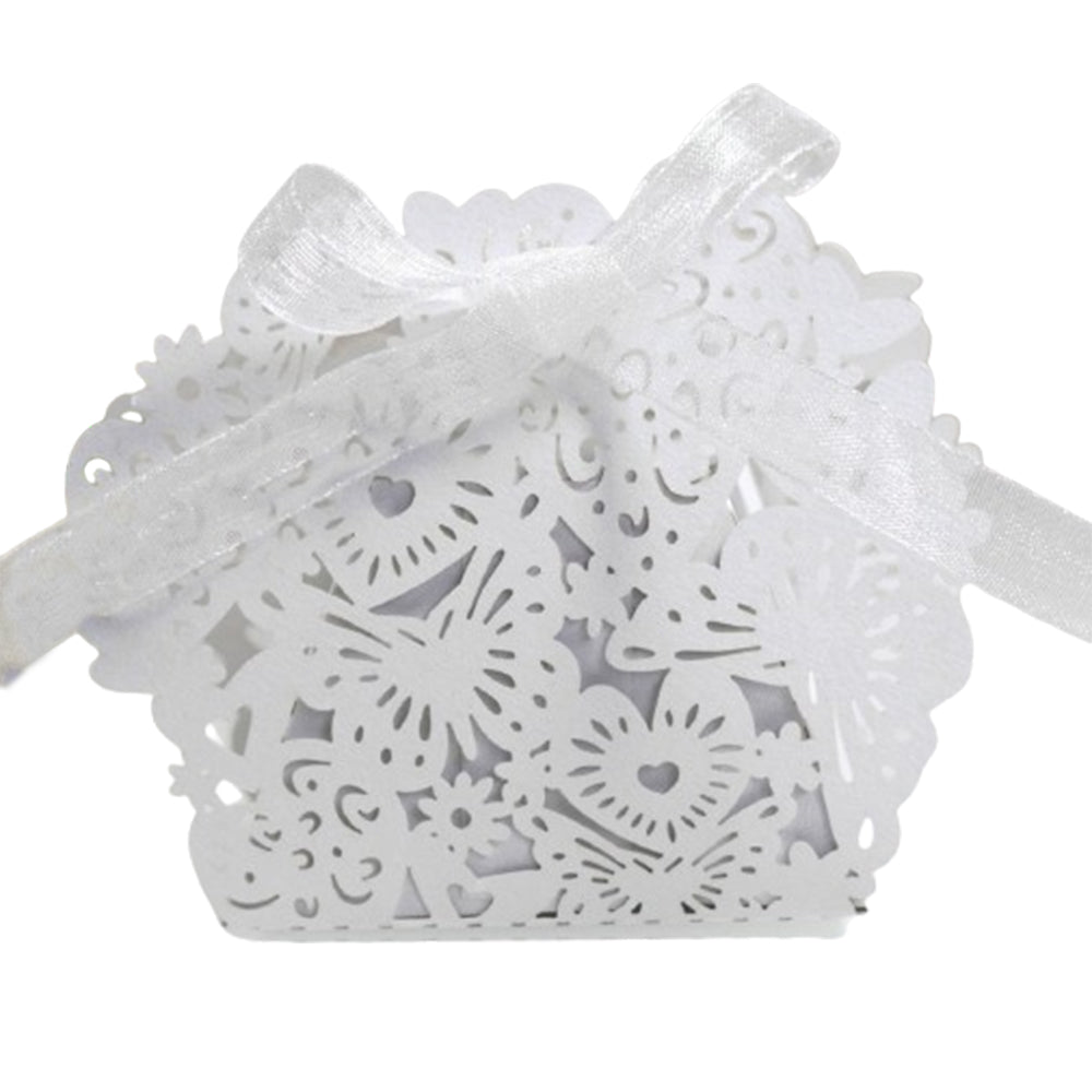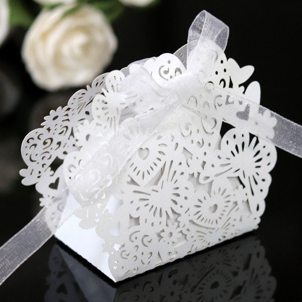 50 pièces Boîte à bonbons Blanc Noël Jour de la Saint-Valentin Cadeau de mariage Design en creux Bonbonnière de mariage