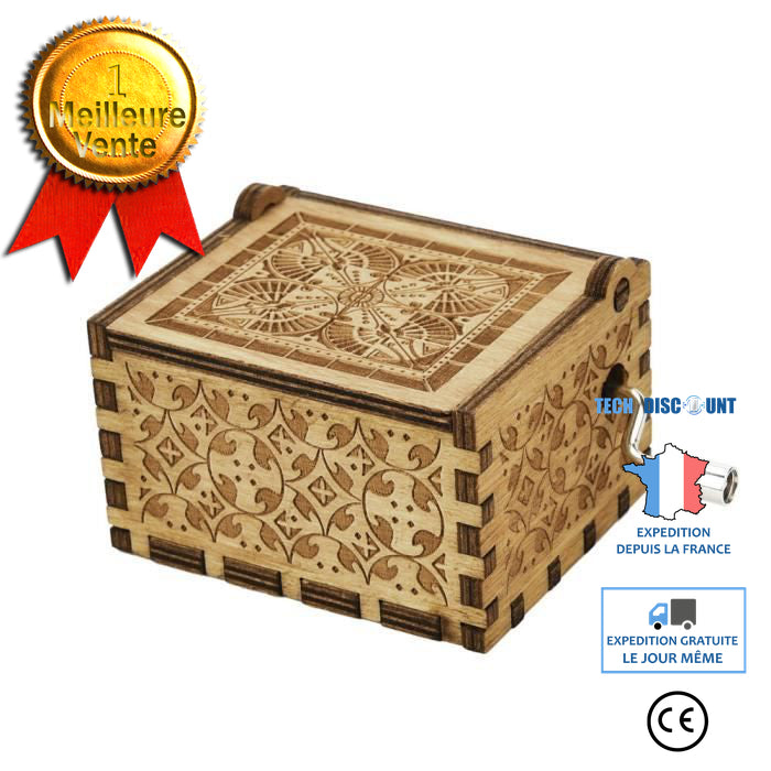 ✅【DESIGN ERGONOMIQUE】la conception de cette boite à été inspiré par les spécialistes millésimes, il offre un design vintage avec des gravures et une petite manivelle pour faire jouer la musique.