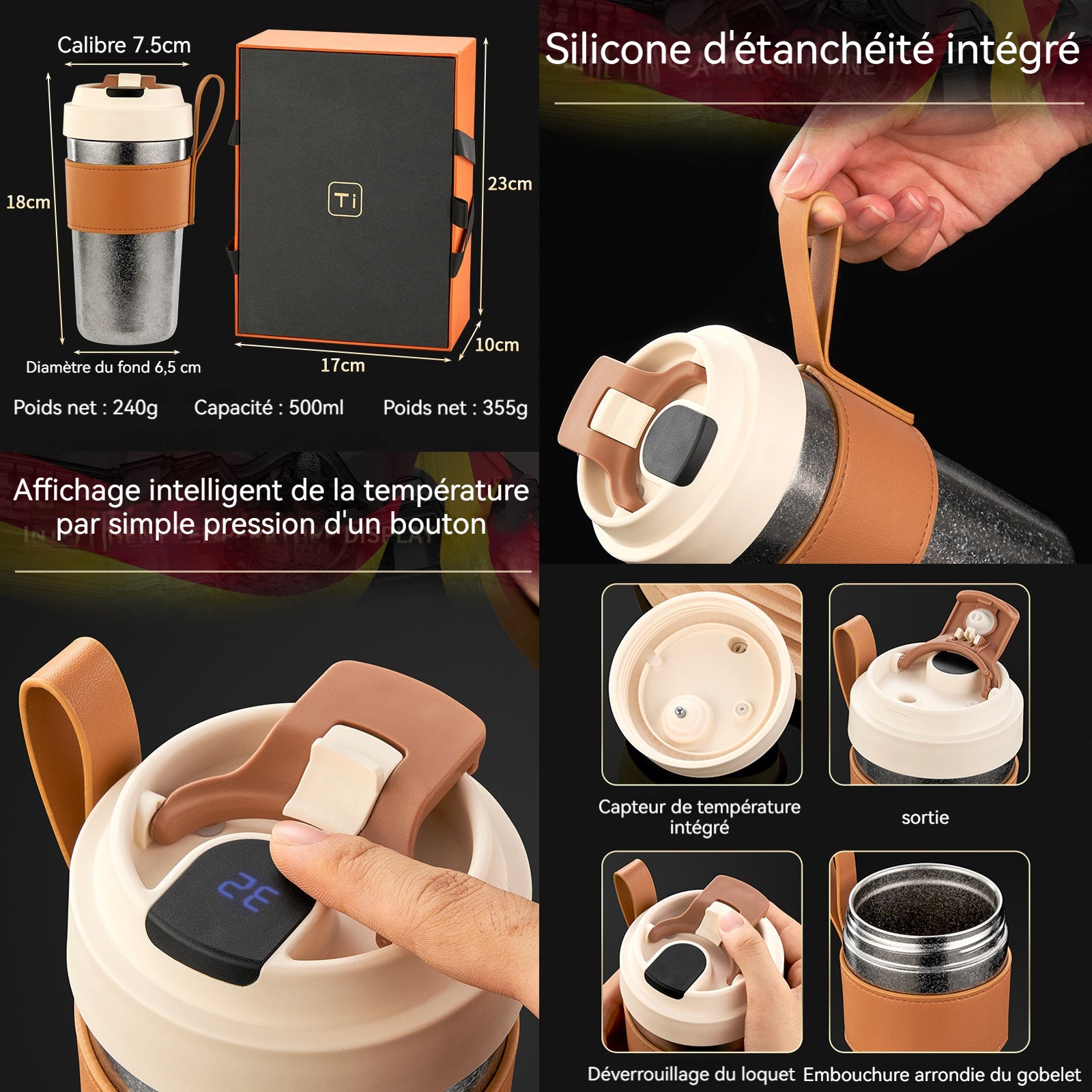 Mug Isotherme 500ml tasse thermos en titane pur tasse thermos à affichage numérique intelligent coffret cadeau exquis pour offrir