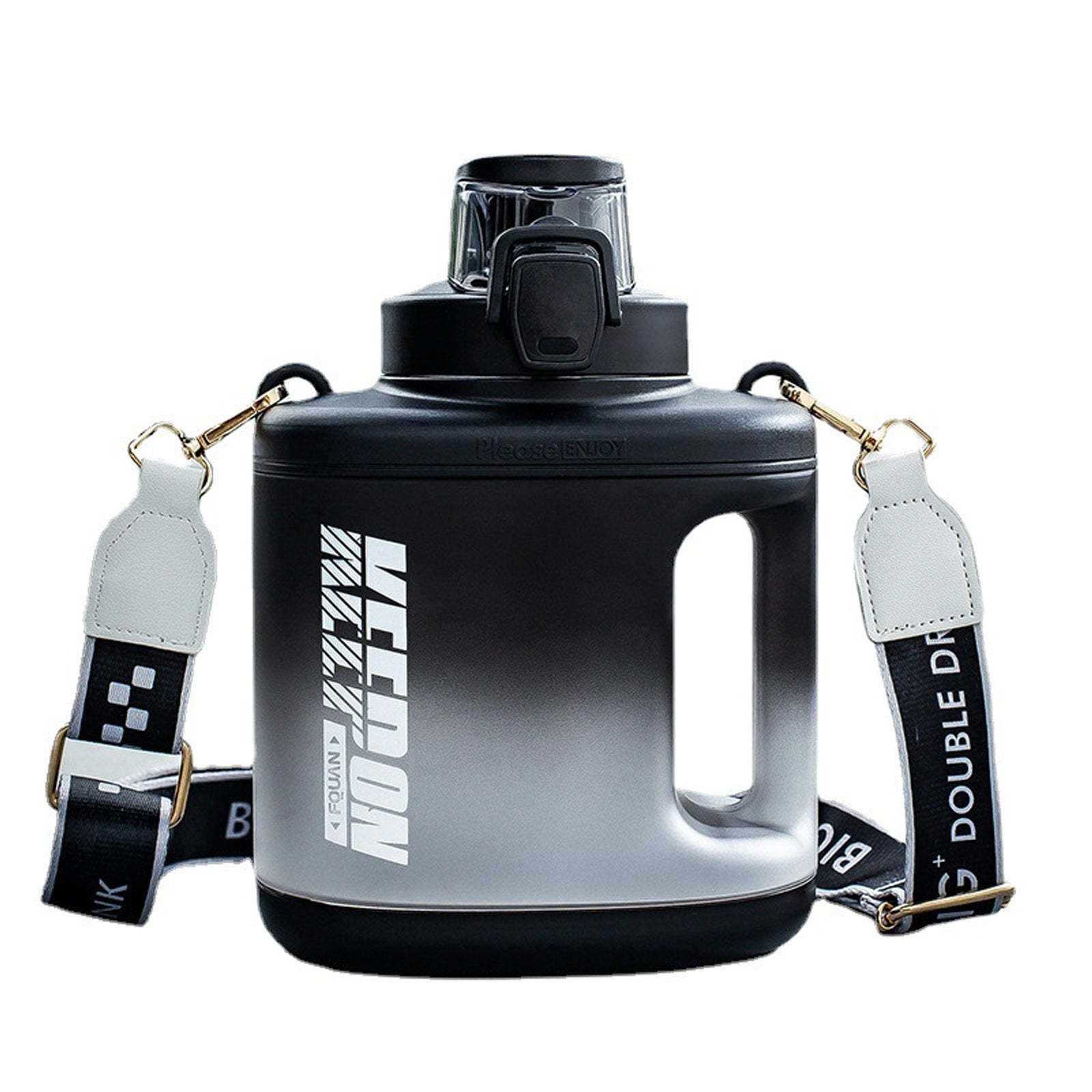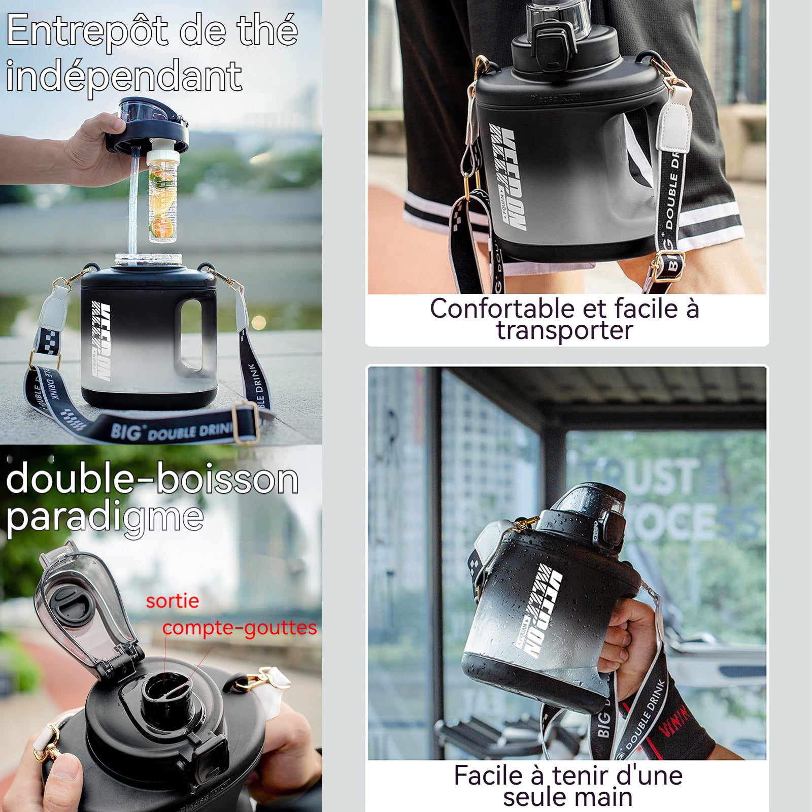 Bouteille d'eau 1700ml grande capacité avec de la paille et sangle résistance à haute température 2 sorties d'eau gourde sport
