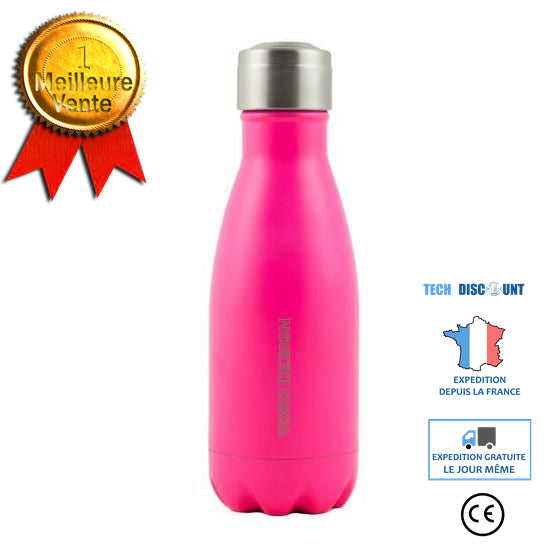 TD® Bouteille Isotherme Double Paroi Contenance 260 ml Rose Mat/Forme Compacte /Ergonomique/ Économique/Grande Contenance/ Isolation