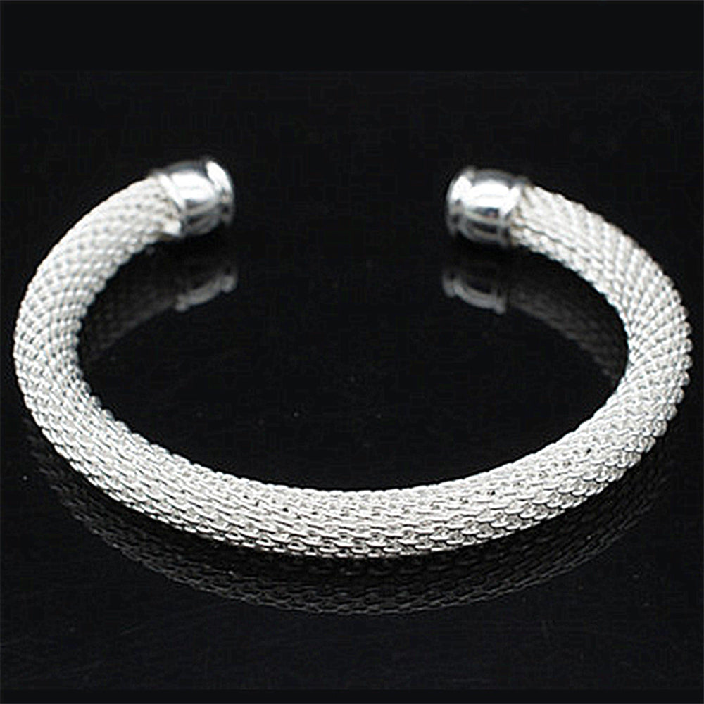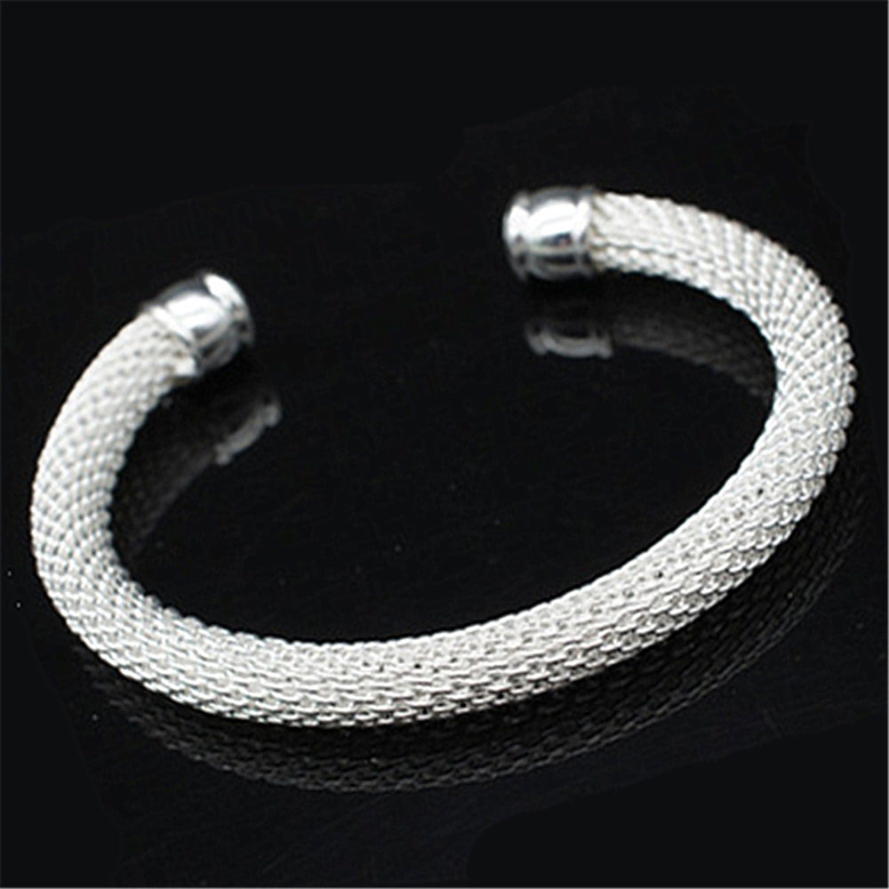 Bracelet en argent pour femme à la mode plaqué argent jonc tube net Bracelet femme bijoux créatifs vacances, cadeau d'anniver