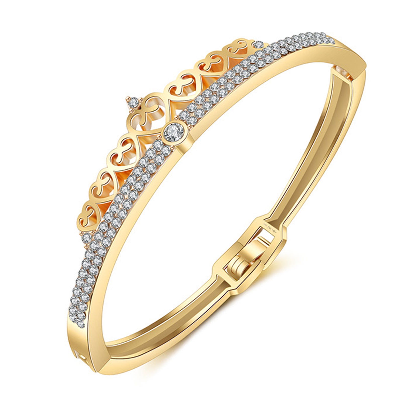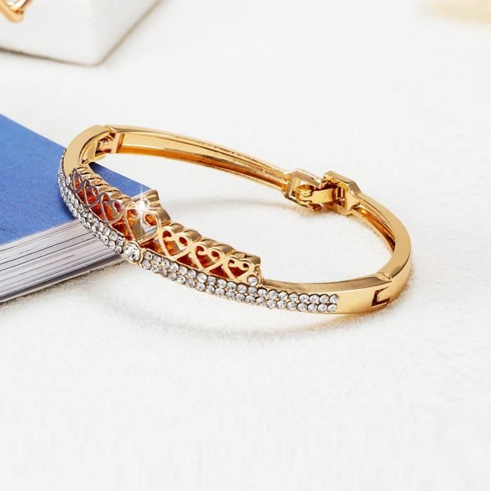 Ceci est un bracelet ajouré d'une couronne en coeurs serti de strass pour femme