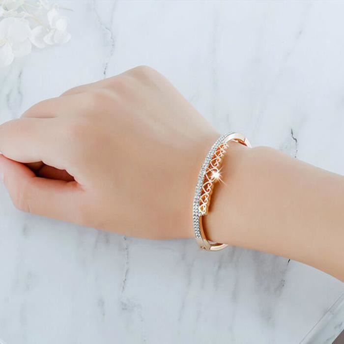 TD® Bracelet Ajouré d'une Couronne en Coeurs Serti de Strass pour Femmes Crystal Charms Élégant Zircon Bijoux Cadeau Couleur Or Rose