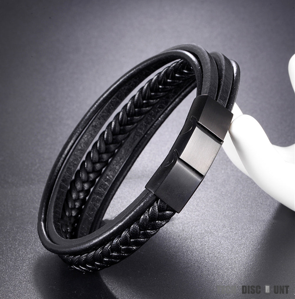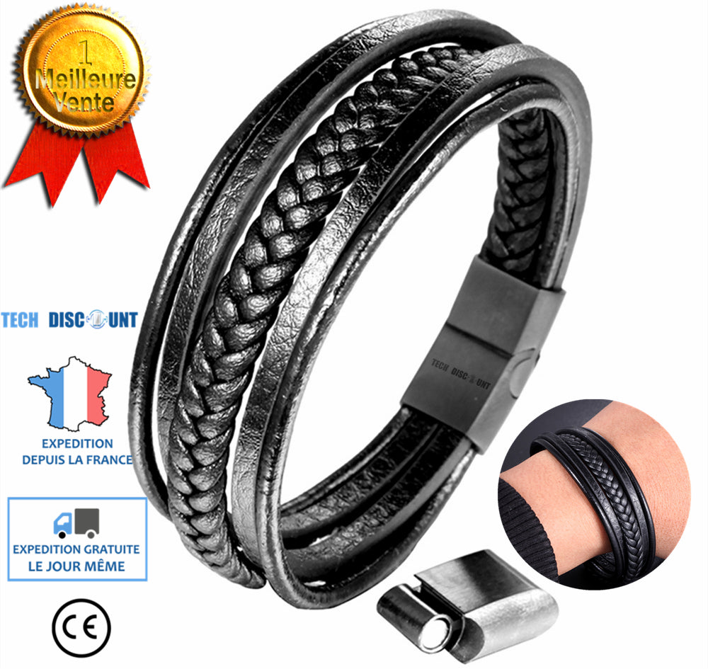 TD® Bracelet en cuir bracelet multicouche tissé bracelet en acier inoxydable homme femme quotidien design style simple sobre discret