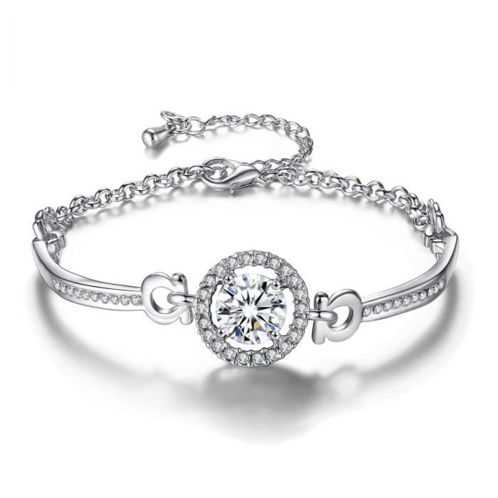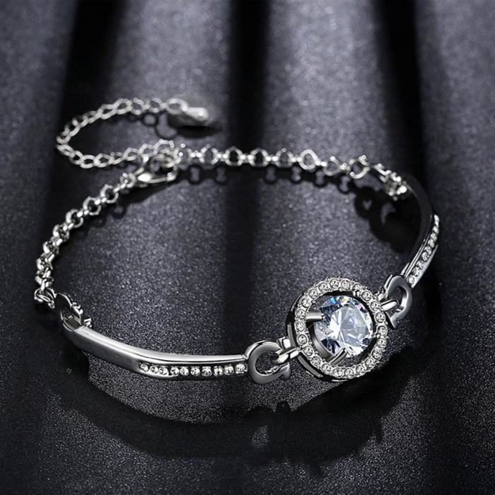 TD® Bracelet Femme Crystal Charms élégant Zircon Strass Blanc Chaîne Bijoux Cadeau Idéal pour les Femmes Fille - Plaqué Argent 925