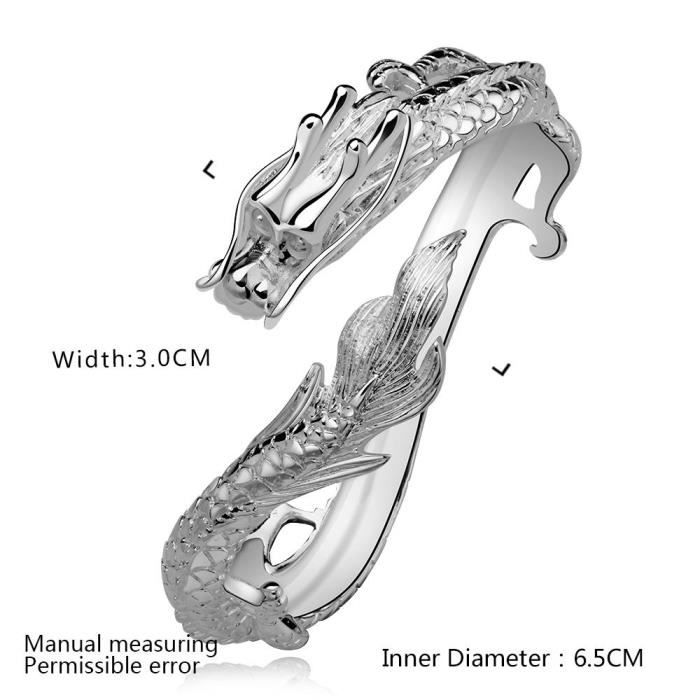 TD® Bracelet Nouveau Style Asiatique Dragon en Plaqué Argent 925 Cadeau de la Femme Saint Valentin Anniversaire de la femme