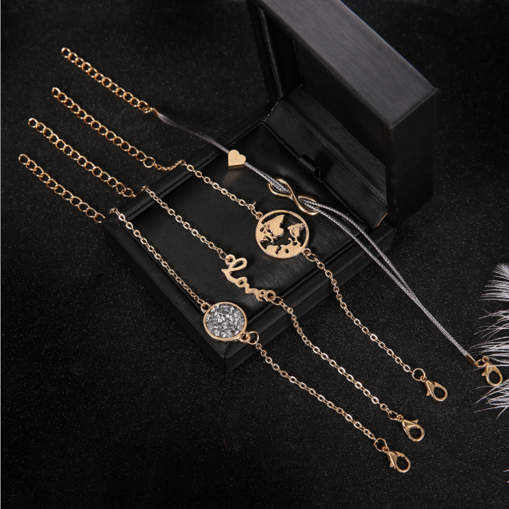 TD® Lot 5 Pièces Bracelet Bijoux Gourmette /Carte Monde Tortue Perle Love Cadeau Pour Femme Fille Moderne Fantaisie