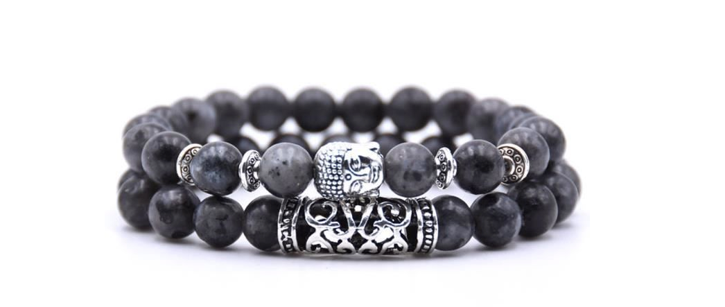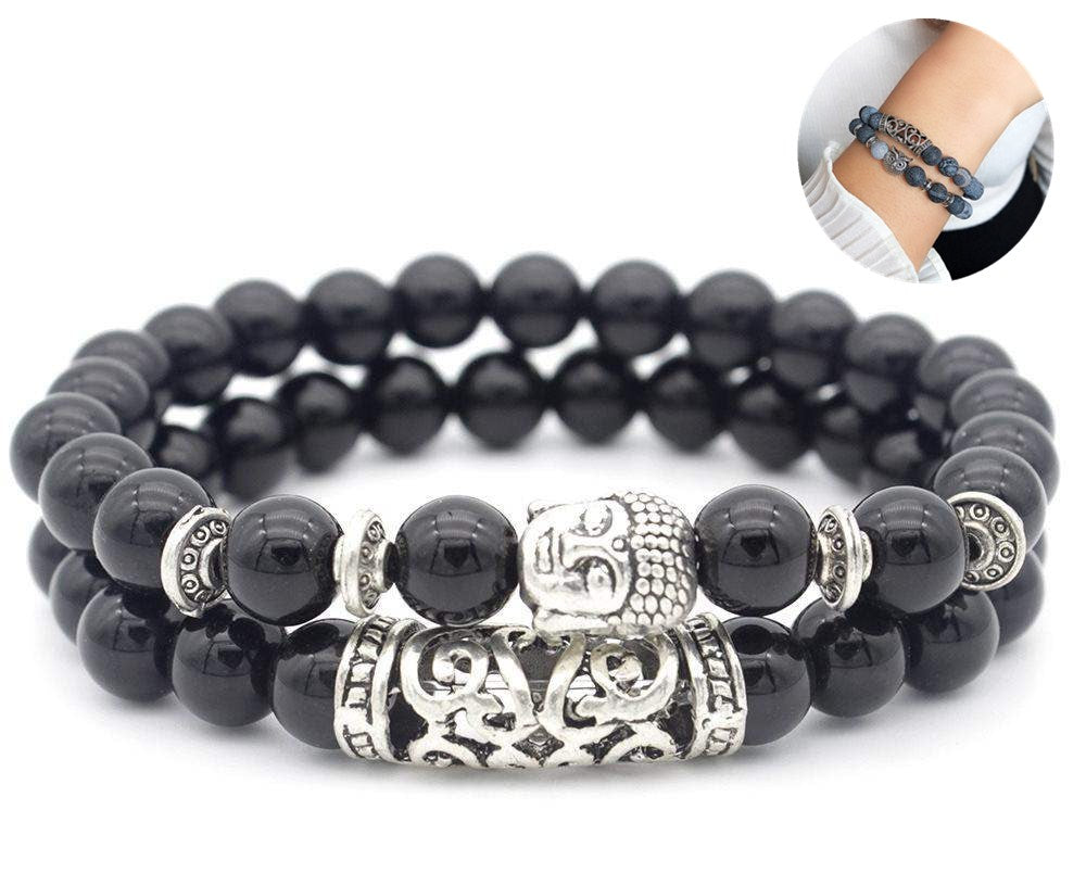 TD® Lot de 2 Bracelets en Perles de Pierres Roulées Nenju Chapelet Bijoux Cadeau Mixte Pour Femme Homme Gris