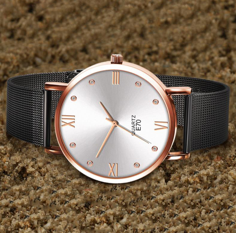 TD® Quartz Montres-bracelets Casual et Business Series Mesh montre de la ceinture cadeaux hommes Ceinture noire or rose visage blan