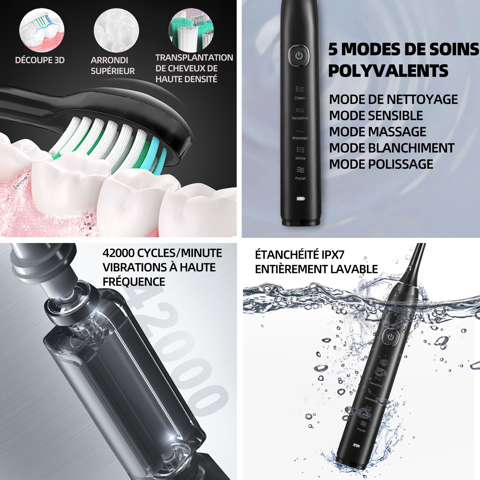 Brosse à dents fréquence de vibration 42000 fois/min 5ème vitesse avec 8 têtes de muet imperméable brosse brosse à dents électrique