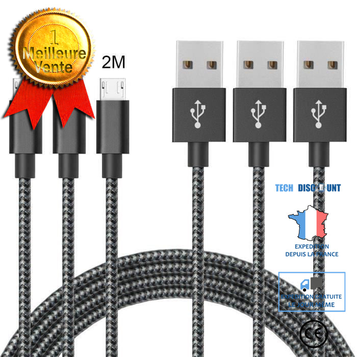 Ceci est un pack de 3 câbles Micro USB de 2 mètres pour téléphones, tablettes Android