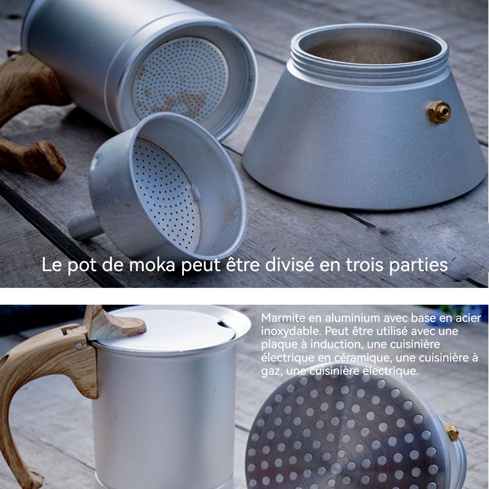 3. Portabilité : Cette cafetière moka est de petite taille, ce qui la rend facile à transporter et à ranger, adaptée à une utilisation domestique mais également idéale pour les voyages.