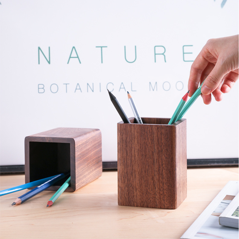 TD® Porte-stylo Porte-stylo créatif en bois massif Boîte de rangement de bureau en noyer noir Porte-stylo simple Apprentissage cadea